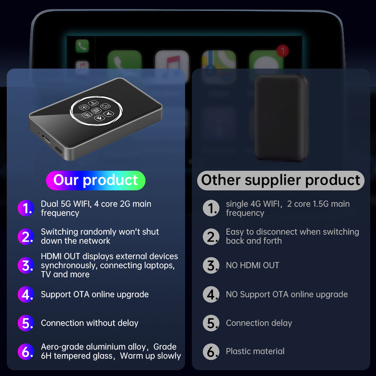1. This device is only compatible with cars with OEM wired Carplay and iPhone. Please make sure your car support wired Carplay before purchase!