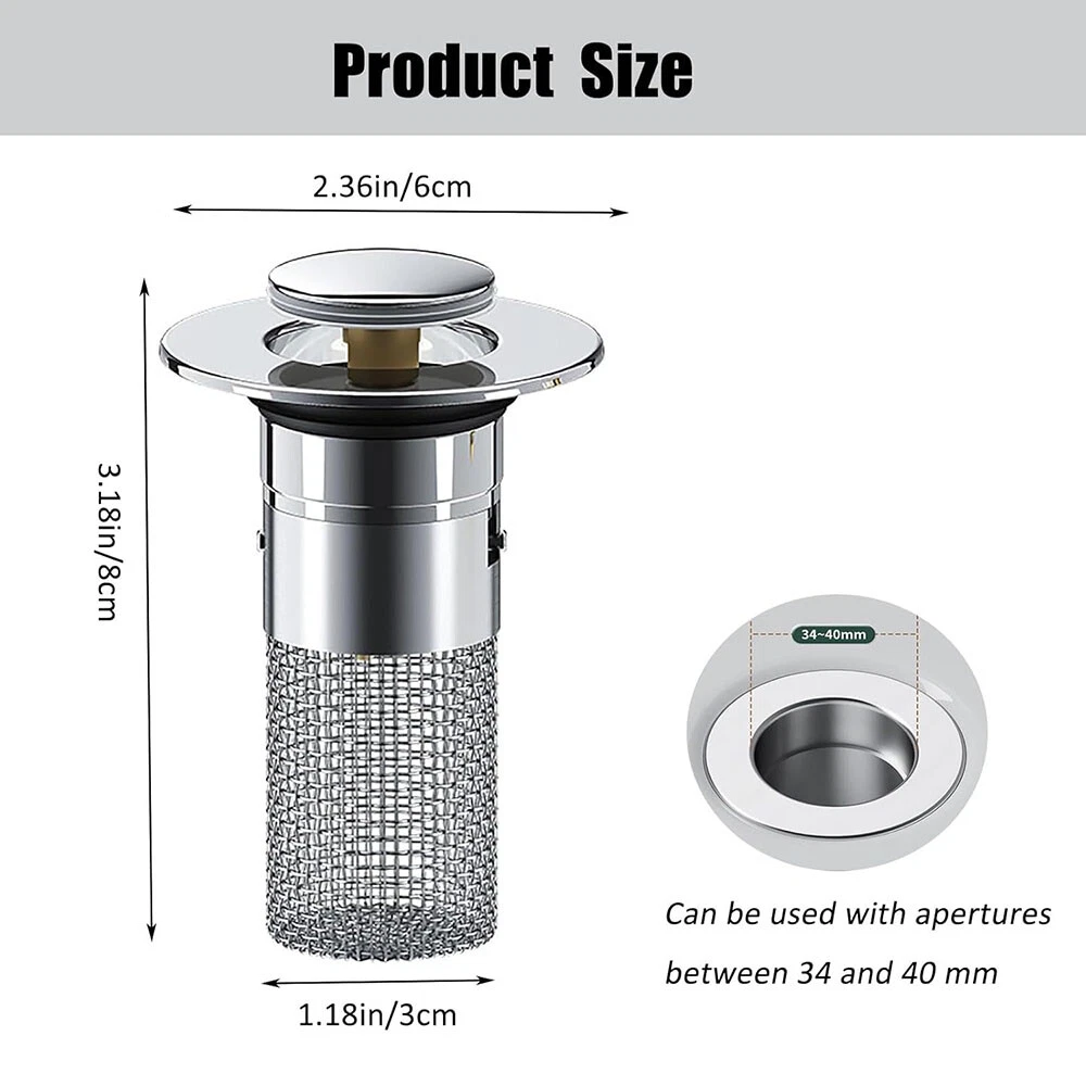 ✅ High-quality Material: Our Bathroom Stopper Hair Catcher is made of durable stainless steel, ensuring long-lasting use. The removable filter effectively catches hair and clogs in your bathroom drain.