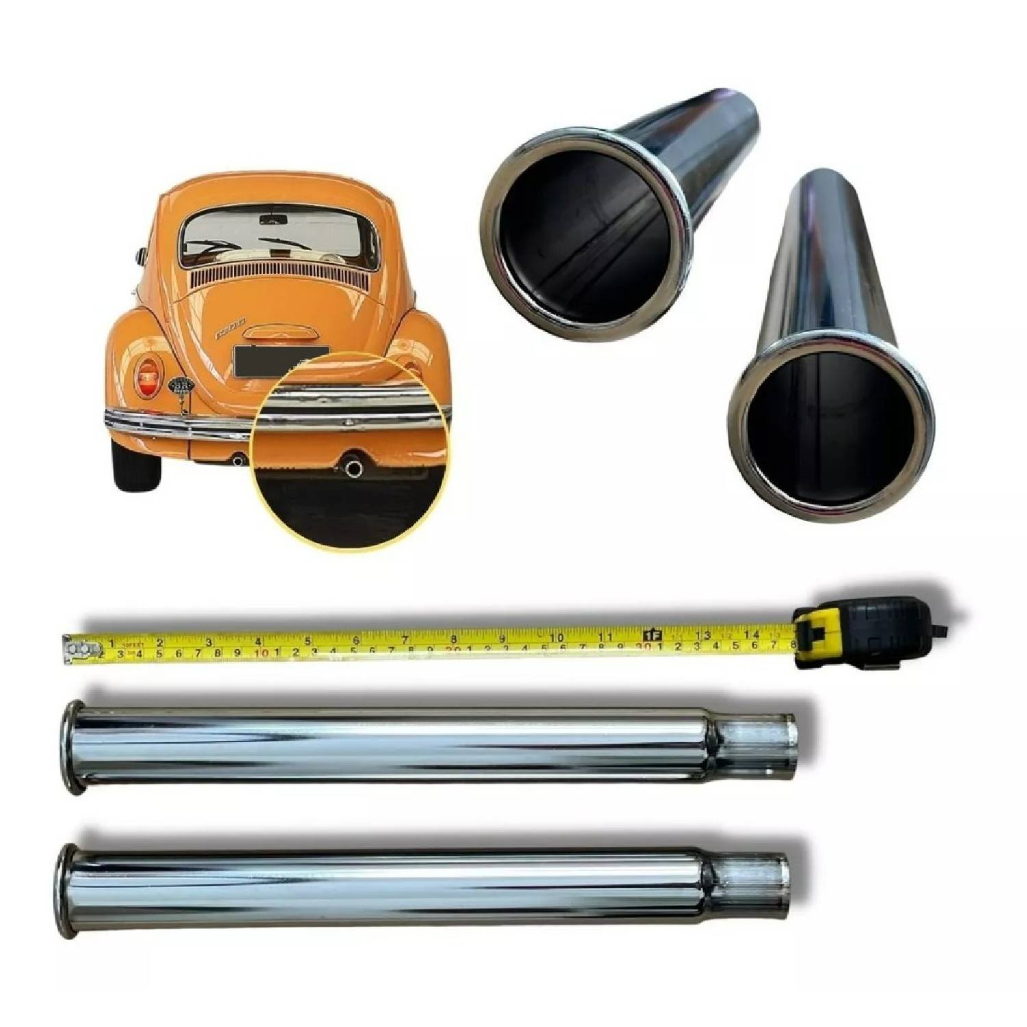 2pcs Pair of 38cm 15.2in Curled Stock Tail Pipe Ends Exhaust Muffler Tail Pipes Exhaust Tip Chromed Steel VW Volkswagen T1 Bug Beetle T2 Bus Kombi Transporter Bay Window T3 T4 Buggy Karmann Ghia