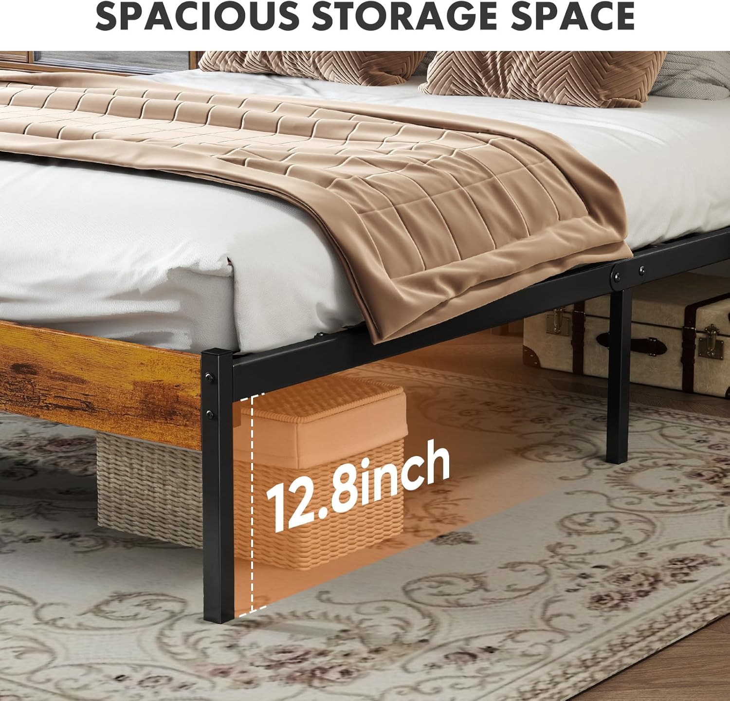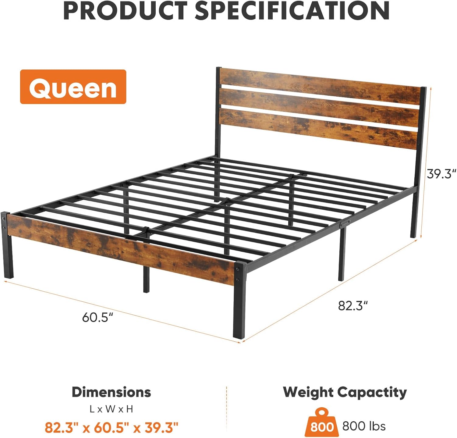 INDUSTRIAL APPEARANCE: The headboard and footboard are made up of waterproof, scratch-resistant wood panels. Rustic headboard and footboard combined with vintage metal slats are retro and elegant, adding an industrial touch and unique flavor to your room. Perfect for most rooms!