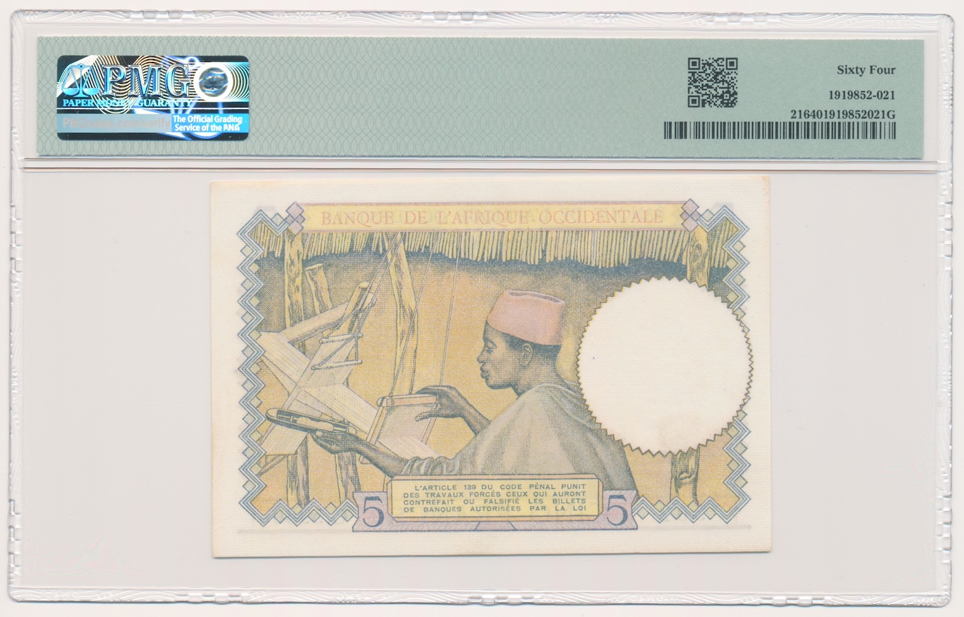 | FRENCH WEST AFRICA banknote 5 Francs 10.3.1938. | |||