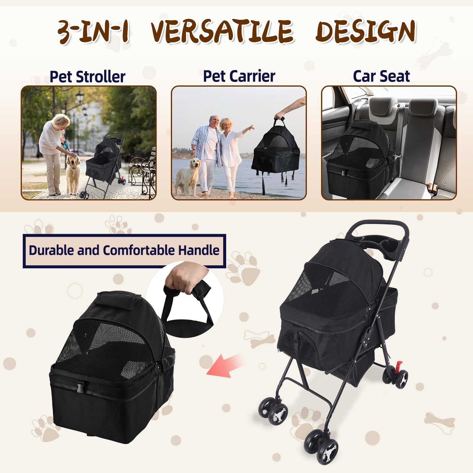 3. Fold the stroller: Pull the stroller up using two hands until the frame parts are disconnected, then press the stroller downwardly.