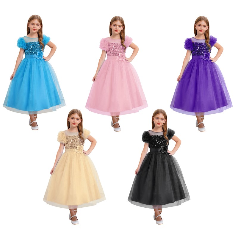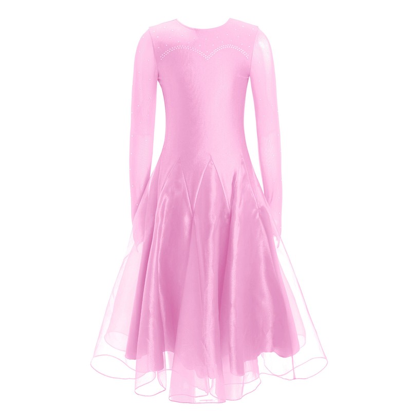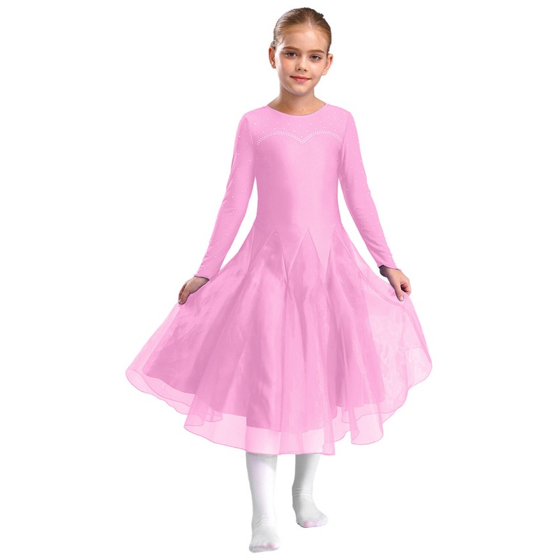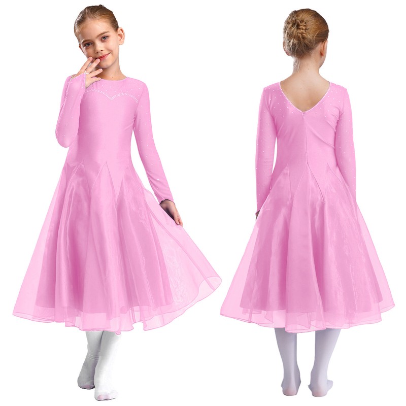 Girl’s dance dress is decorated with rhinestones sparkles under the light and makes your child eye-catching in the crowd.