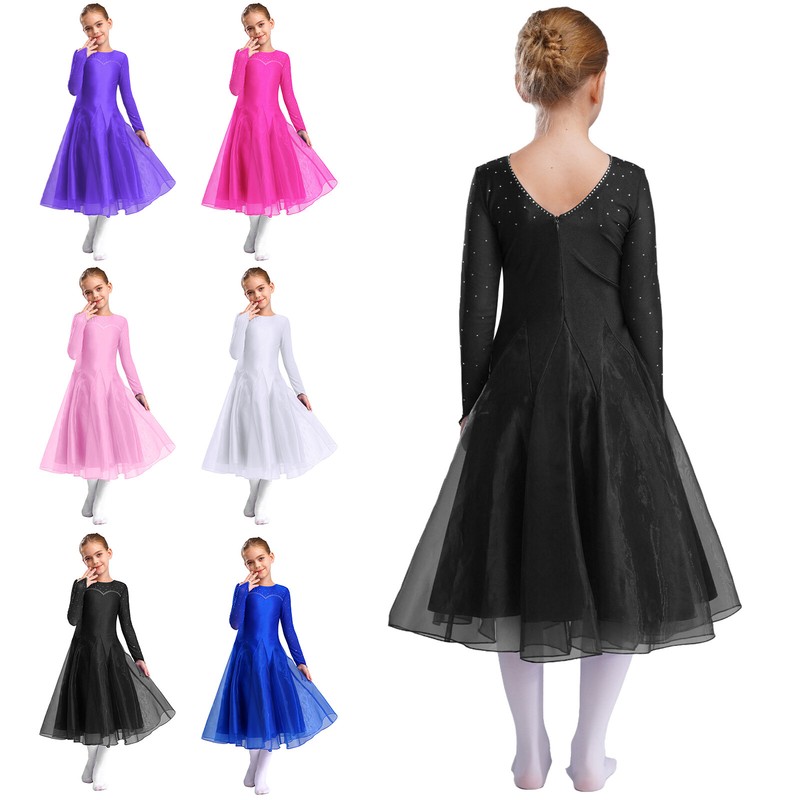 This flared dance dress shows the beauty of dance and makes your girl look more stunning, greatly inspires the passion in the performance.