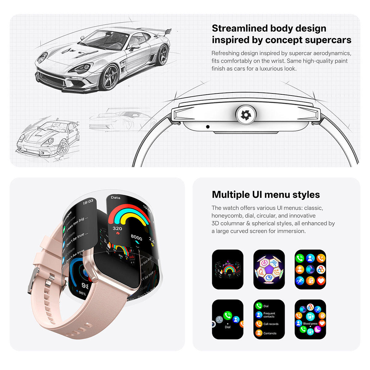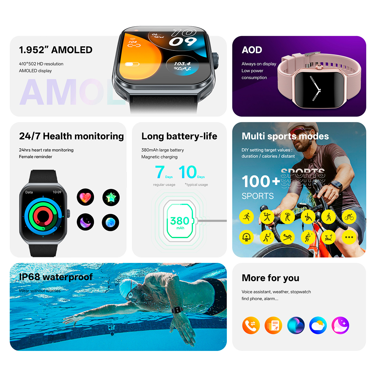 2. Ultra clear AMOLED screen: Built in 1.95 "ultra clear large-sized screen, ultra-high screen to body ratio and color saturation, screen resolution up to 410 * 502, clear and delicate display, bright colors;