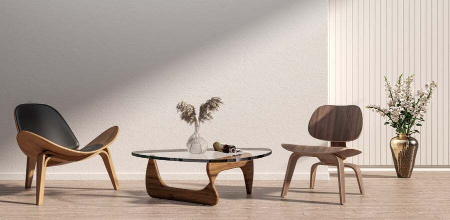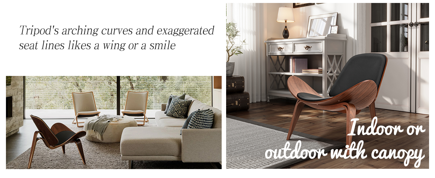 The three-legged shell chair is one of the most famous plywood classic pieces of furniture. It removes the handrails and has a unique smile curve and shell-like design language