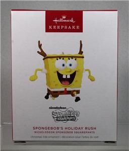 This is a fantastic artist crafted 2024 Hallmark Ornament. It is titled 'SPONGEBOB'S HOLIDAY RUSH' featuring the loveable Nickelodeon character! This would make a great addition for any Hallmark collection or as a gift for your favorite SpongeBob Squarepants fan!