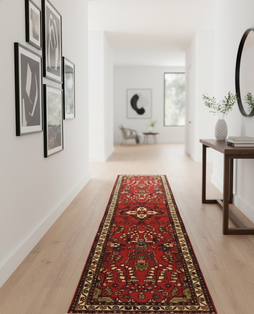 2'5X9'7 Handmade Vintage Oriental Runner Rug Red Floral Design Kitchen Carpet