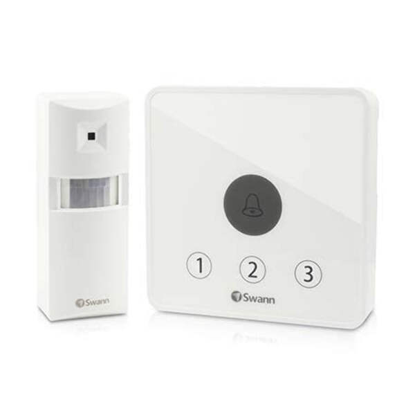 Benefits Connect in minutes with easy mounting, pairing & convenient wireless operation Position the PIR Alert Motion Sensor where you need protection near entrances, front & back doorways, driveways, garages, shops, restaurants, cafes, reception areas, lobbies or anywhere activity occurs The Receiver unit emits an audible alarm & lights up when the Alert Sensor detects movement Choose between 3 volume levels for the alarm on the Receiver Unit or use silent mode with blue lights flashing on the channel linked to the triggered Sensor Enjoy the convenience of wireless with a long range up to 200ft/60m from each Sensor to Receiver The PIR Alert Sensor detects motion up to 40ft/12m away with a weatherproof design for monitoring driveways & other outdoor locations, with the ability to adjust the position using the rotating mounting brackets The doorbell channel is reserved for doorbell units (sold separately) and can only be uséd to pair with with Driveway Alert system. The reset button also functions as the Doorbell Chime Selection button. Applicable only if you have a Doorbell unit added to the system
