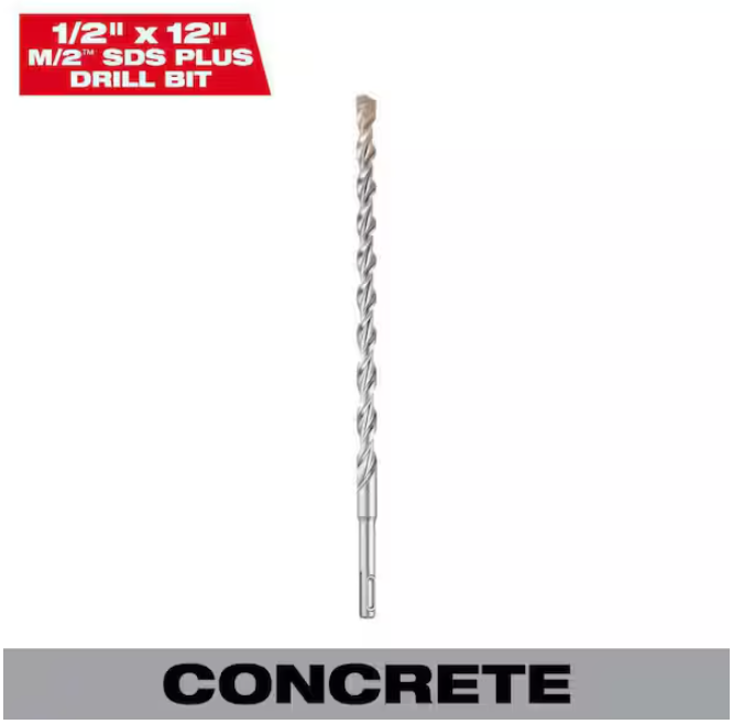 Milwaukee M/2 2-Cutter SDS-Plus Rotary Hammer Drill bits provide up to 30% faster drilling speeds and up to 20% more holes per charge in cordless rotary hammers. Breaker Point pulverize the material more effectively resulting in up 30% faster drilling speeds compared to competitive SDS-Plus drill bits. The variable flute allows for maximum debris extraction leading to up 20% more holes per charge in cordless rotary hammer while making it a very durable bit in corded and cordless rotary hammers. The enhanced rebar guards provide increased durability in hard aggregate and rebar. Additionally, M/2 features a centering tip for exact spot drilling, wear mark indicator indicating when the bit no longer meets ANSI diameter requirements, and a reinforced flute for durability and minimized vibration. The increased life and efficiency of the M/2 2-Cutter drill bit line provides the ideal solution in brick, block, and concrete for cordless and corded rotary hammer users.