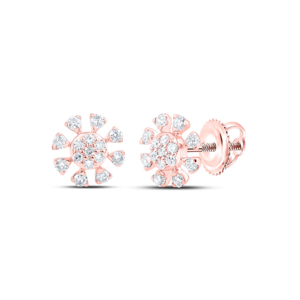 (0.76 gr. of 14k Rose Gold | Total Carat Weight: 0.33 ct. t.w. of White Diamonds | Length: 8mm | Width: 8mm | Clarity: I1 - I2 | Color: H - I | Women Genuine White Round Cut Diamond Geometric Flower Frame Statement Stud Earrings)