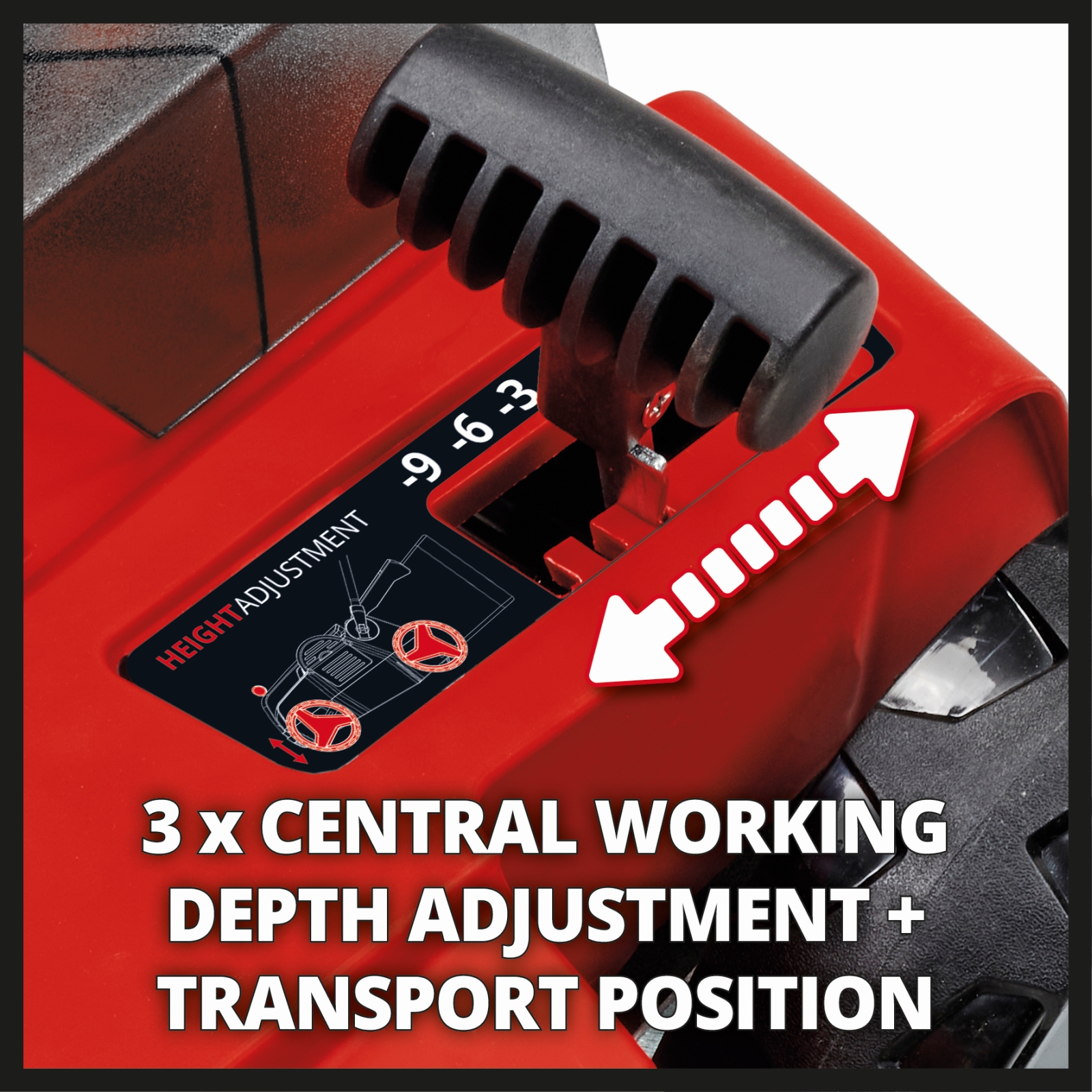 Central 3-setting working depth + transport position