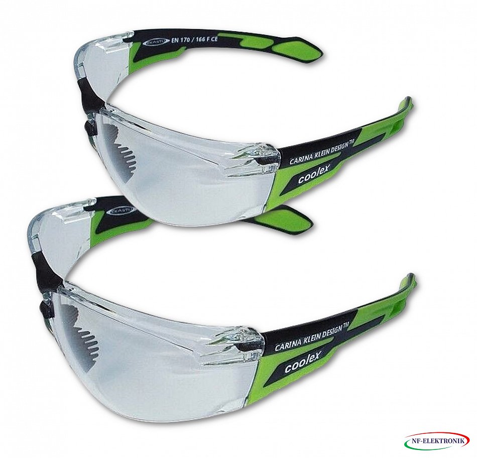 Produktinformationen coolex, die coolste UNISEX Schutzbrille der Welt sportlich dynamisches Modell überzeugt durch top Trageeigenschaften, bei gleichzeitig geringem Gewicht und stets perfekten Sitz für die unterschiedlichsten Kopfgrößen weicher Nasensteg und überzeugende Schutzbügel aus 2 Komponenten Material garantieren Rutschfestigkeit und maximalen Komfort, den ganzen Arbeitstag spezielles Design des Rahmens gewährleistet effektiven Zusatzschutz der Augenbrauen und Augenrändern 100% UV 400-Schutz mit antibeschlag und kratzfesten Polycarbonat Sichtscheiben, die fertigungstechnisch sorgfältig kristallklar entspiegelt werden coolste Schutzbrille bei voller Sicherheit, mit innovativen Bügelkonzept, mega weichen Bügelenden, optimierte im Windkanal entwickelte Scheibengeometrie für höchsten Tragekomfort DIN EN 166 1 F