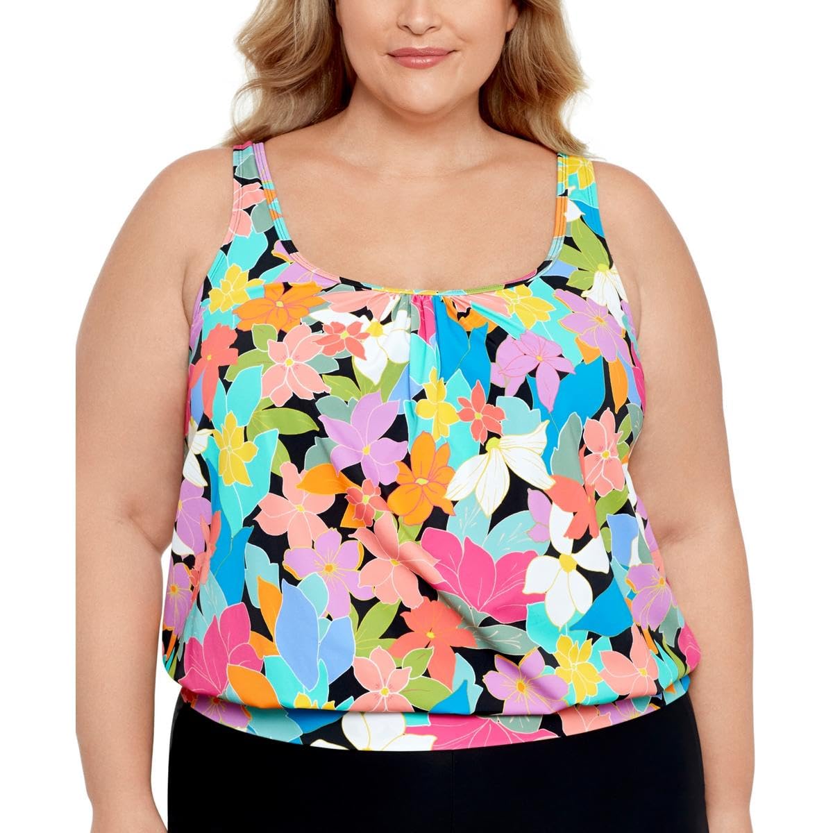 Swim Solutions 20 W Plus Size Blouson Underwire Floral Tankini Swim Top