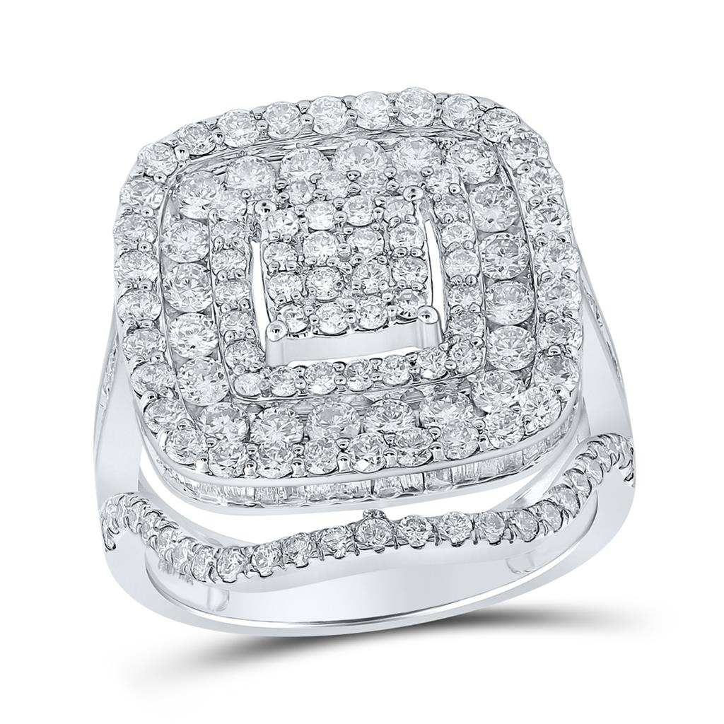 (5.13 gr. of 10k White Gold | Total Carat Weight: 2.75 ct. t.w. of White Diamonds | Width: 21.5mm | Clarity: I1 - I2 | Color: H - I | Women's Baguette & Round Cut Diamond Right Hand Split Shank | Square Ring Stackable Split Shank Band)