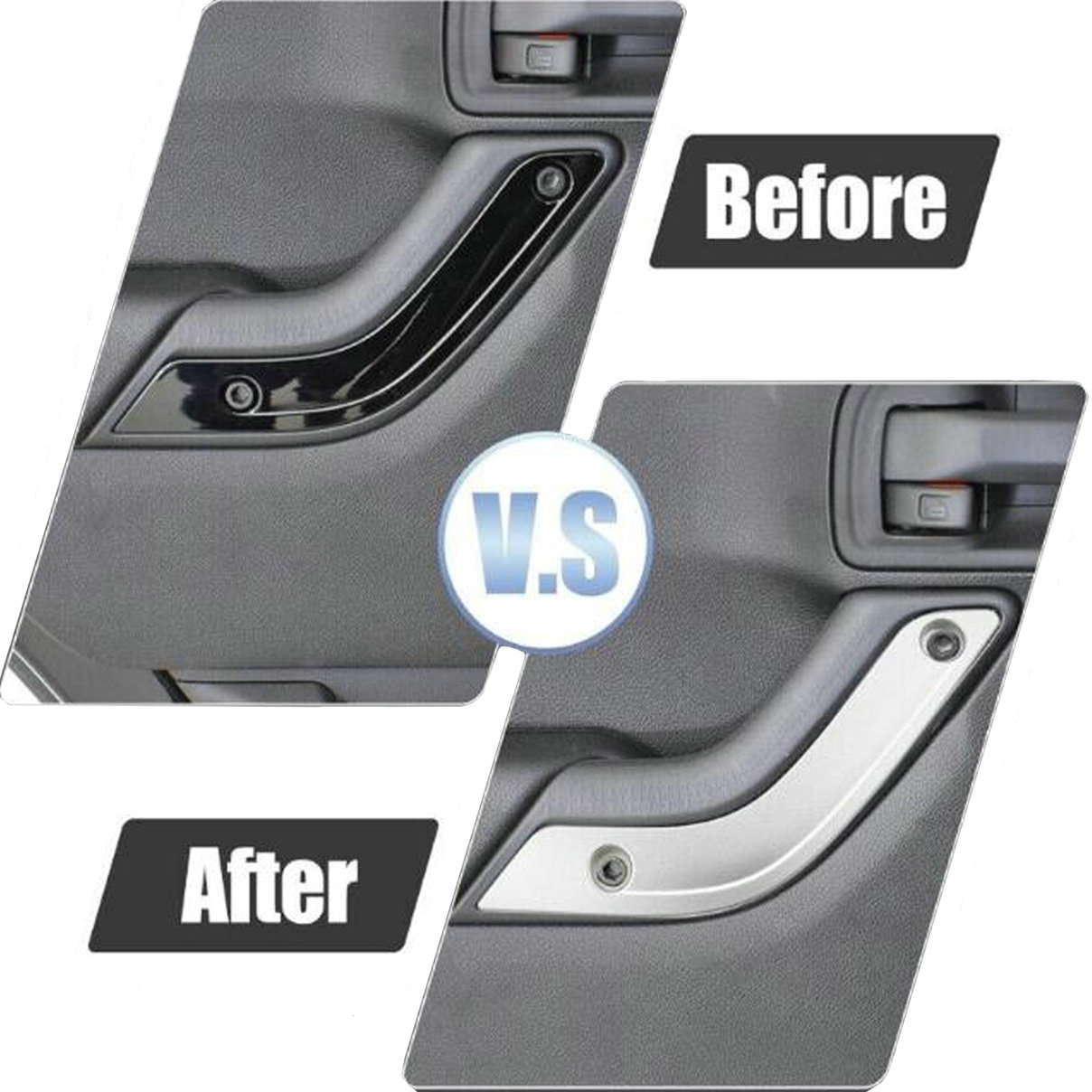 【Premium Material】Made of high quality plastic, this silver door handle grab decoration is solid, durable and has a long service life. Ideal for the left/right worn silver door handle grab trim replacement.