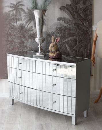 IL Corpo in legno di alta qualità, completo di Vetro a specchio Coperto, riflette elegantemente la luce e porta una sensazione di larghezza nella stanza.