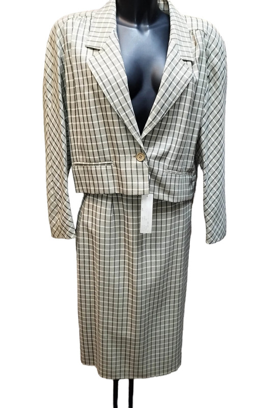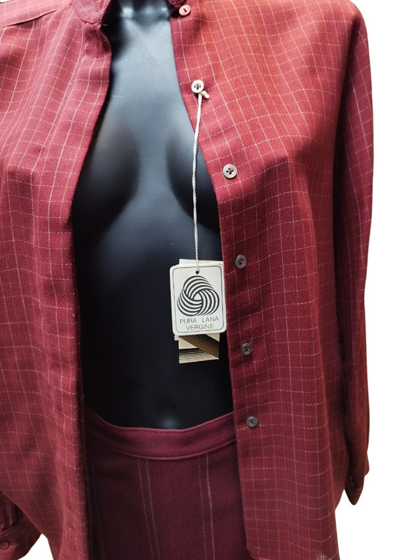 available. ✨ Vintage Italian Wool Tailored Suits – 1980s Classic Women’s Sets – Made in Italy ✨Upgrade your wardrobe with these elegant and versatile vintage Italian tailored suits from the late 1980s. Crafted from high-quality Pure Virgin Wool, these sets offer timeless sophistication, impeccable craftsmanship, and incredible styling flexibility. 💯 Brand New with Original Tags – Perfectly preserved in-store! 👗 Set 1 – Vestebene® Made in Italy: Versatile Shirt & Skirt SuitThis refined two-piece suit consists of a long shirt-style blouse and a matching knee-length skirt, allowing for multiple styling options: