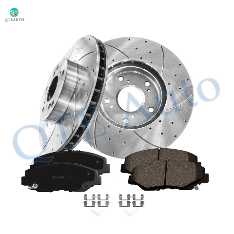 6 Front 282mm Drilled Brake Rotors-Ceramic Brake Pad For 2003-2017 Honda Accord