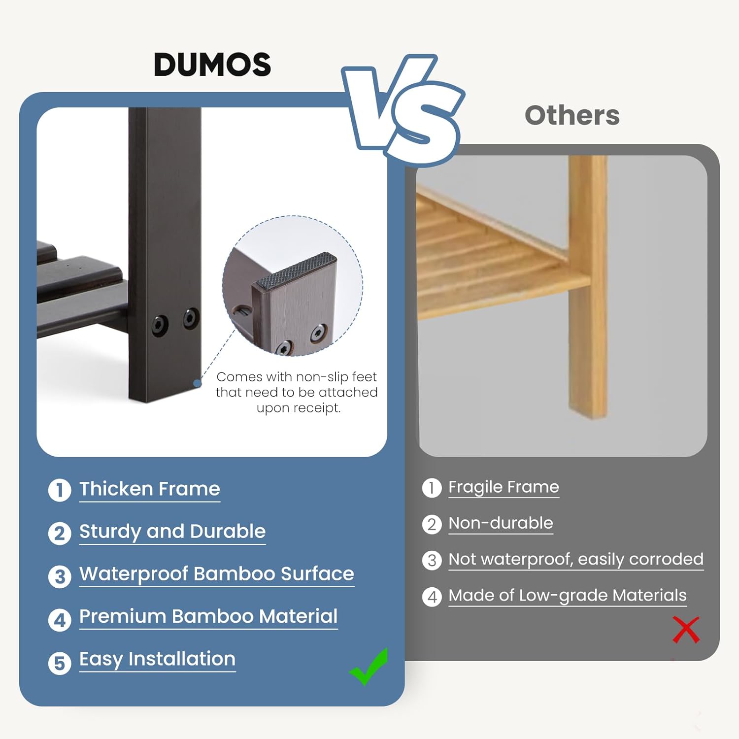【Premium Quality Bamboo】Crafted from 100% high-quality bamboo, our shoe rack is not only durable but also water-resistant, ensuring long-lasting use. The natural bamboo finish adds a touch of elegance and sophistication to any space, making it a stylish addition to your home decor.