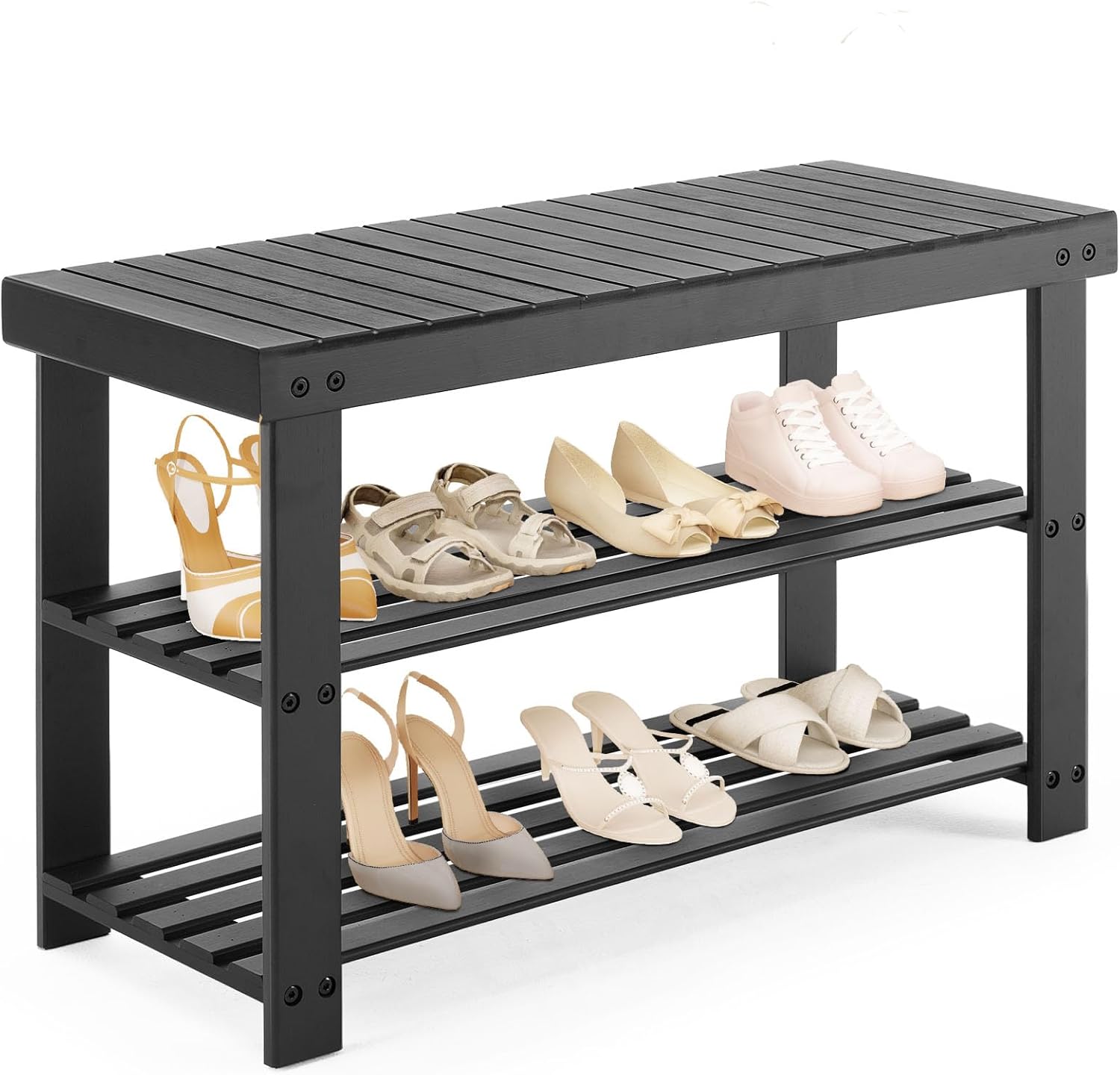 【Versatile Storage Solution】The JHK Shoe Rack Bench can hold up to 6 pairs of shoes, making it the perfect solution to keep your entryway organized and free from clutter. Whether you need to store sneakers, boots, or sandals, this shoe rack accommodates them all, creating a neat and tidy environment.