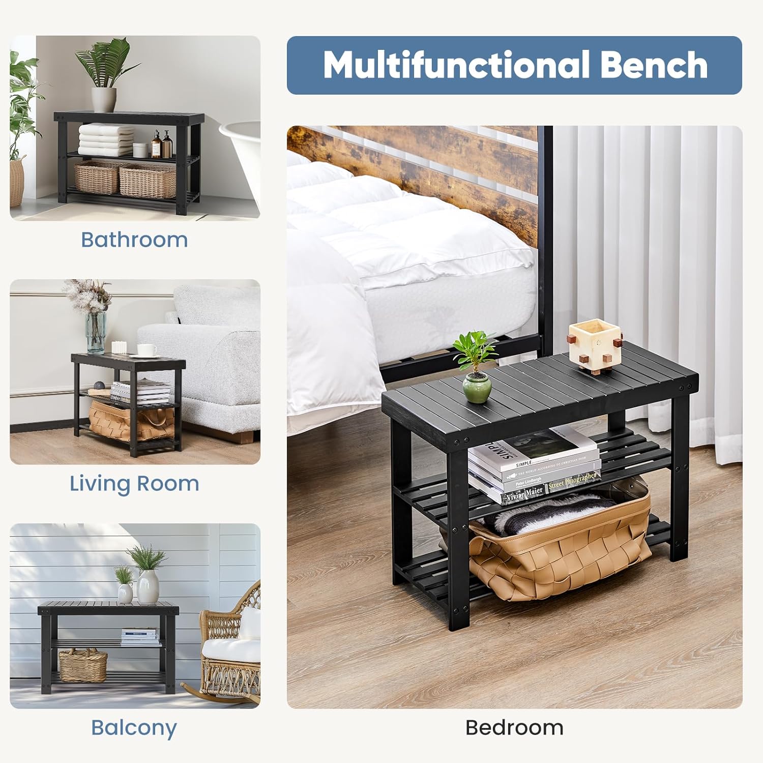 【Multi-functional Entryway Bench】Beyond being just a shoe rack, this versatile piece of furniture can also function as a nightstand, bathroom towel rack, or even a trusty companion for camping trips. Its multifunctional nature allows it to adapt to various uses, meeting different storage needs efficiently.