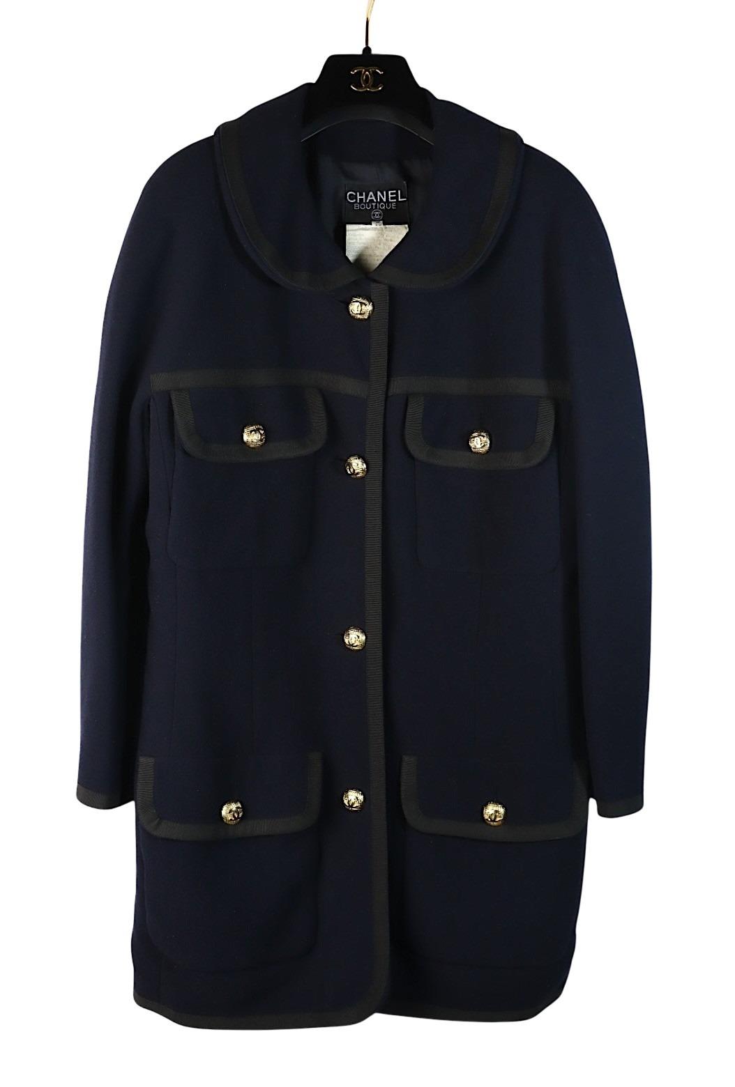 Vintage 1996 Chanel Classic Navy Wool Long Jacket