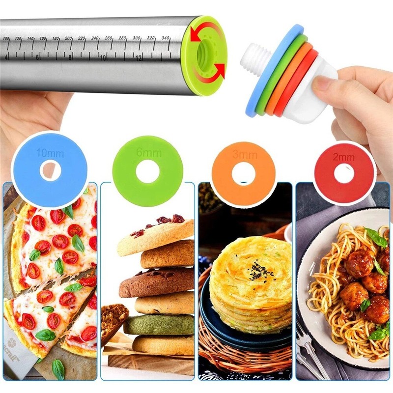 Product descriptions ✪BAKING TIME - Adjustable rolling pin makes super more easier to roll out the dough of cookies, pie crusts and pizza to a uniform thickness without having to move sticks. And amazing this rolling pin spacer is easy using for your kids. Let cake baking make the whole home fragrant.