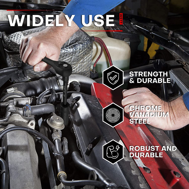 【Advantage】 Equipped with 1/4" 72-tooth ratchet handle; extension bar and universal joint, the rotary handle helps you turn fasteners for better access and work, universal joint with a 360° range of motion, extension bar can reach deeper fasteners