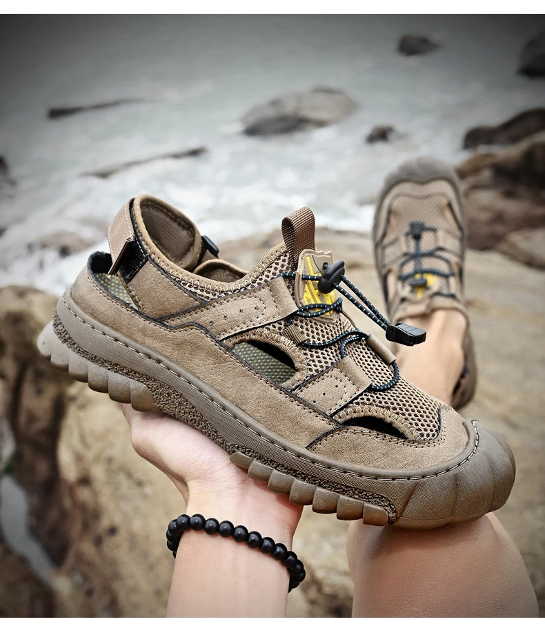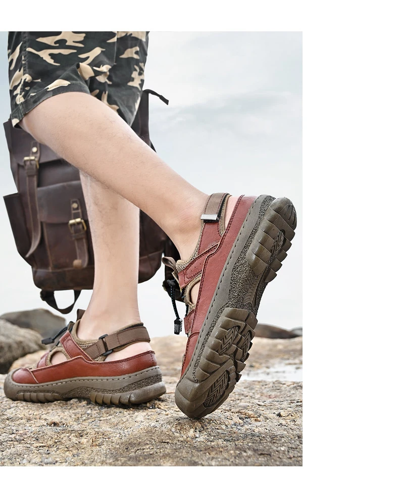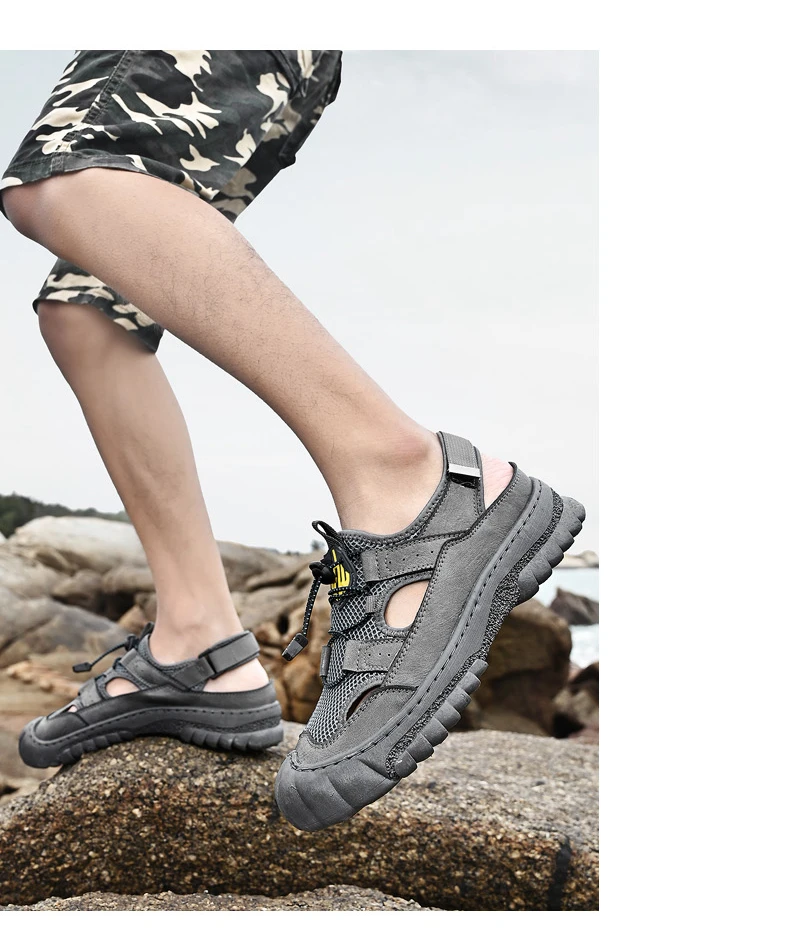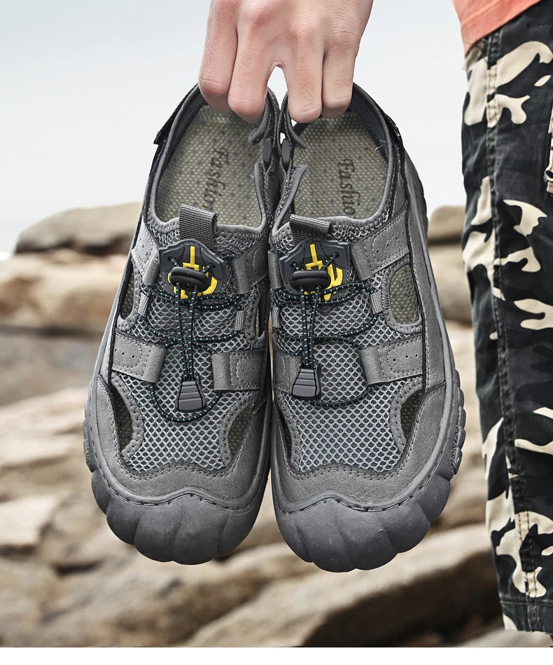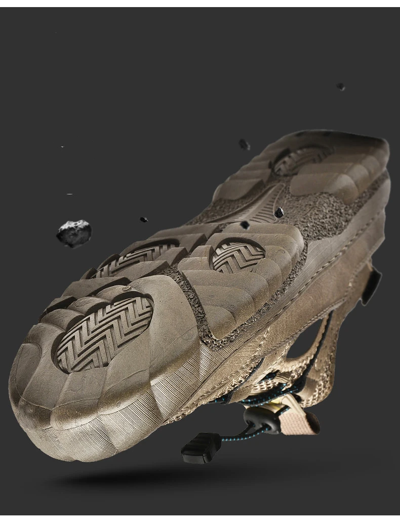 Rugged Anti-Slip Sole: Deep-tread rubber outsole grips wet surfaces, sand, or uneven terrain, ensuring stability and safety on any adventure.