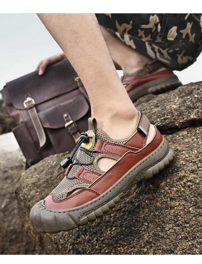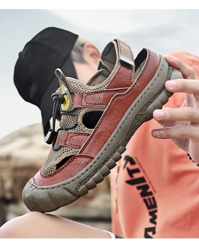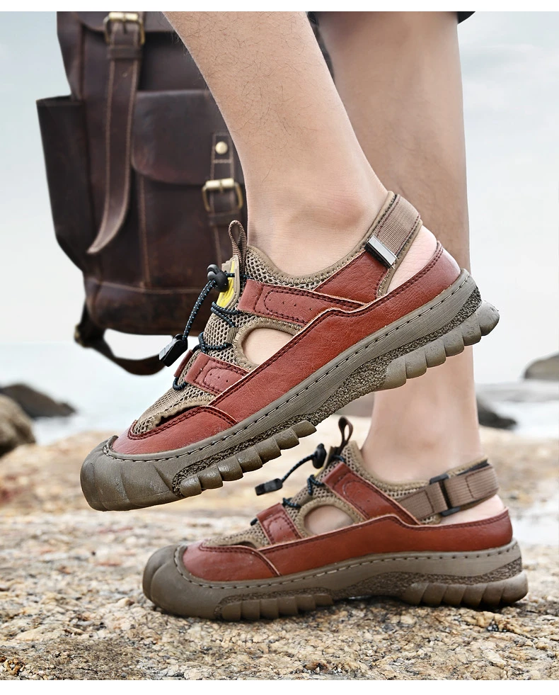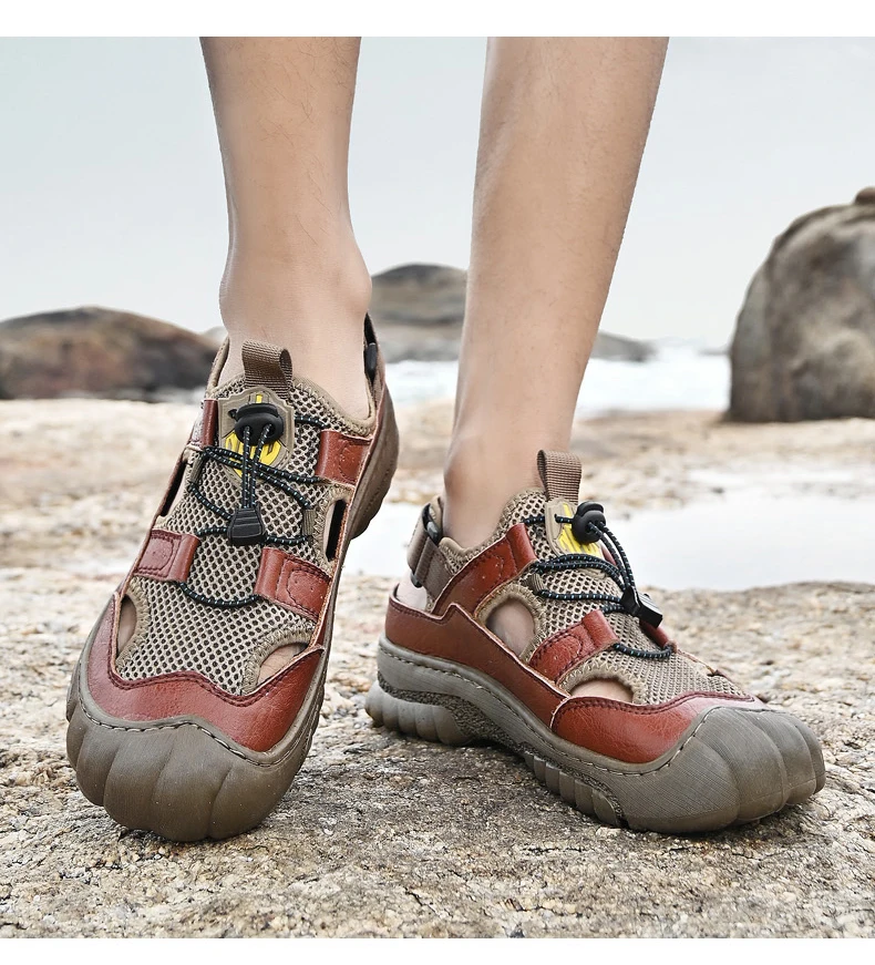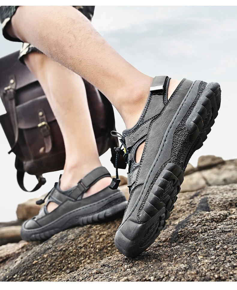 Rugged Anti-Slip Sole: Deep-tread rubber outsole grips wet surfaces, sand, or uneven terrain, ensuring stability and safety on any adventure.