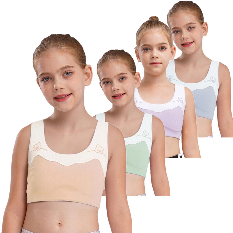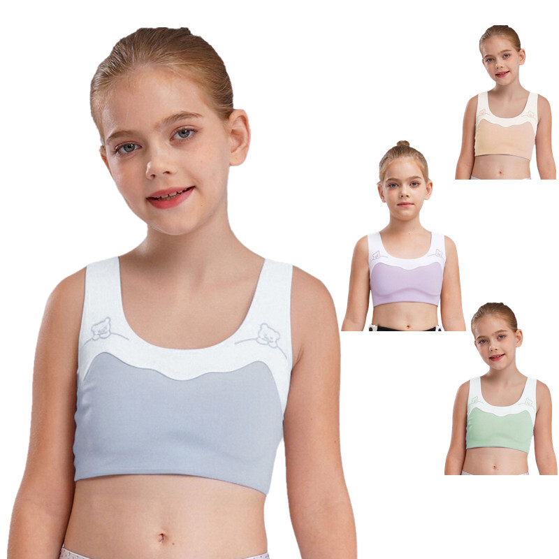 Girls Bra U-neck Crop Top Puberty Vest Breathable Brassiere Dancing Tank Tops