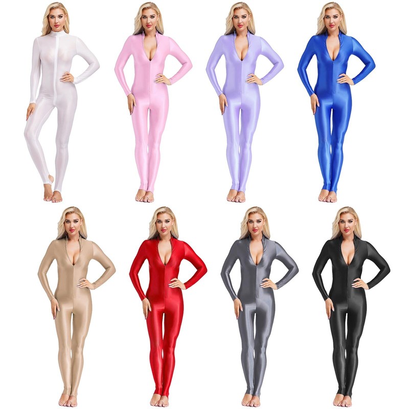 Womens Open Cups Catsuit Patent Leather Crotchless Bodysuit Skinny Jumpsuits.