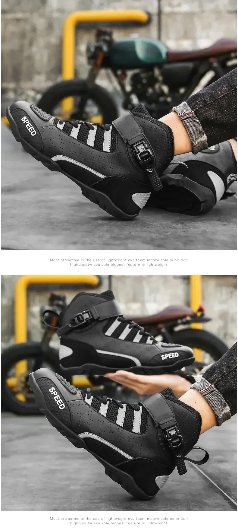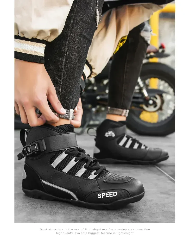 Crafted with high-grade reinforced leather and abrasion-resistant panels, these boots shield your feet from road debris, impacts, and harsh weather, ensuring long-lasting wear even on rugged rides.
