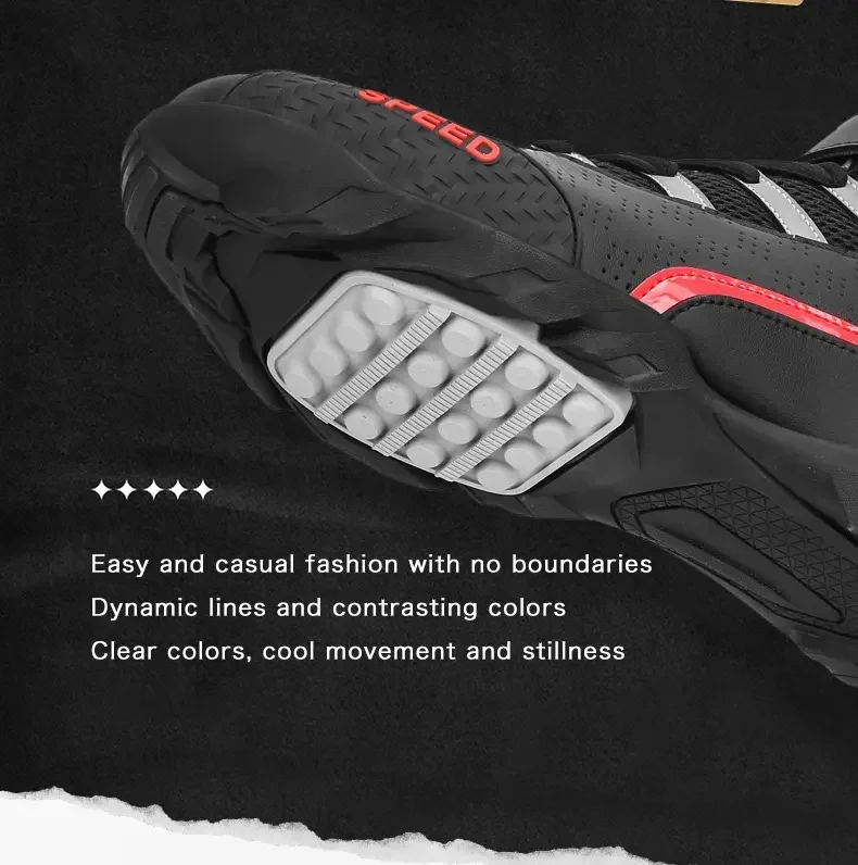 Metal-reinforced toe boxes and non-slip heel grips protect against gearshift wear and improve stability when planting feet on uneven terrain.