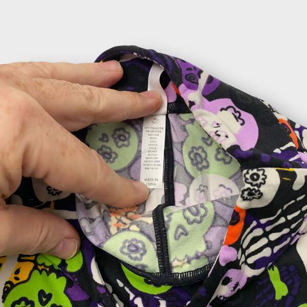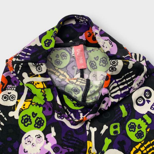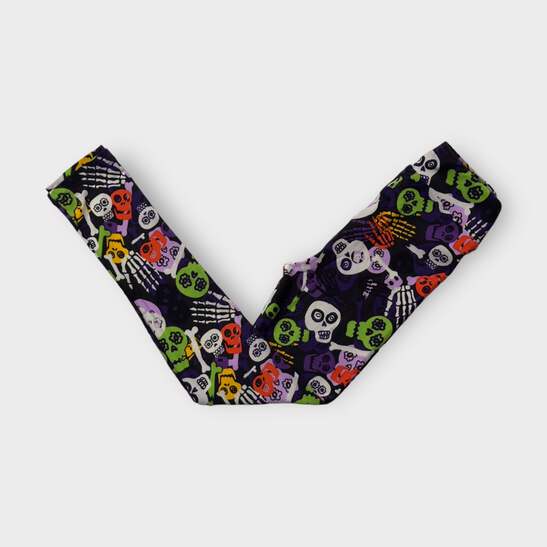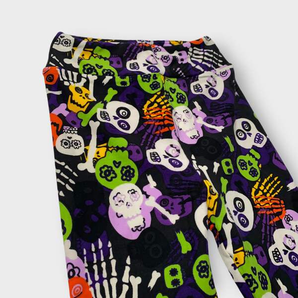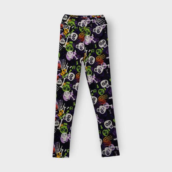 Embrace the spirit of Halloween with our LuLaRoe Kids Halloween Leggings! Crafted from a soft and stretchy polyester/spandex blend, these leggings feature a striking black color adorned with playful skulls and skeletons. Perfect for little ones who love to express their unique style, these footless leggings offer both comfort and a fun flair, making them an essential addition to any Halloween wardrobe.