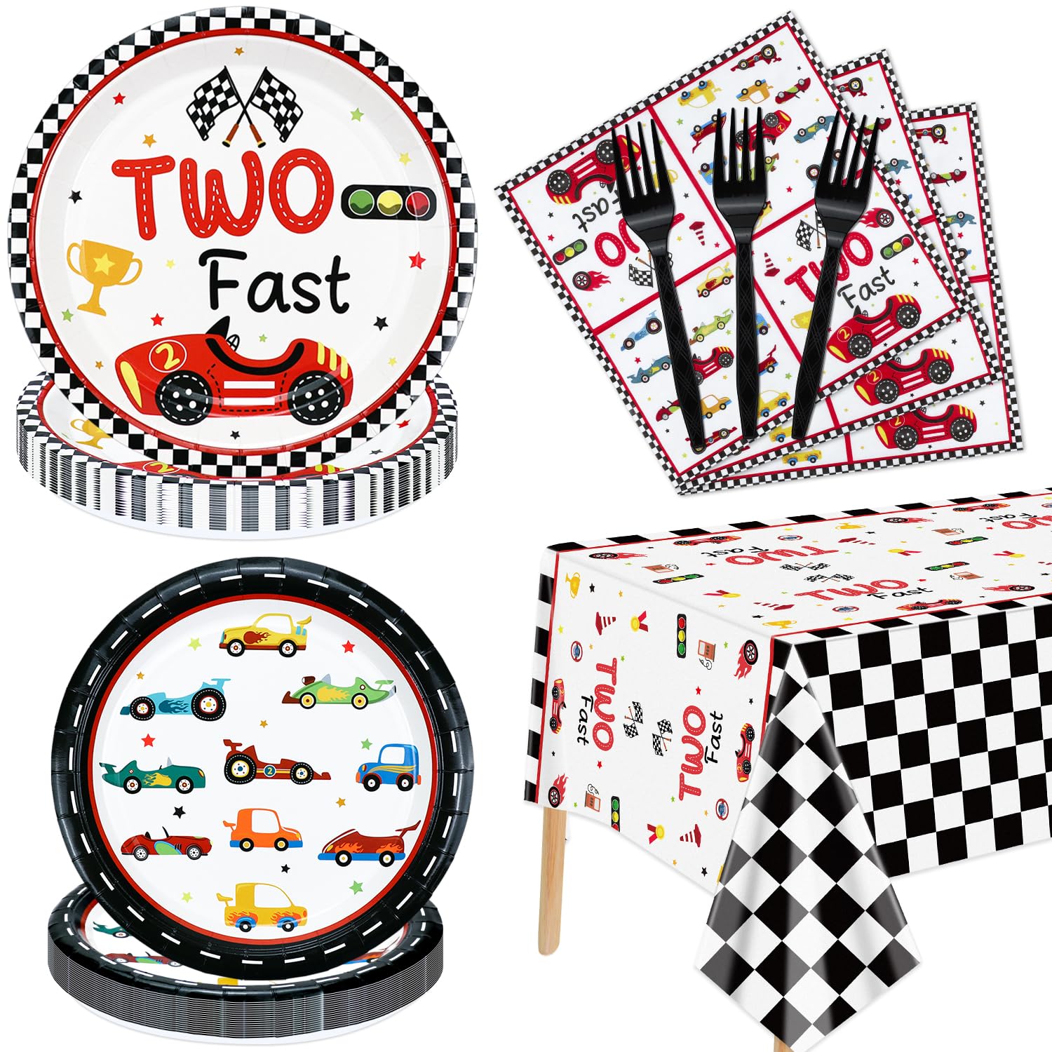 Make your little boy's party a roaring success with the two fast birthday party supplies. Designed with race car enthusiasts in mind, this party pack is ideal for boys who love speed and adventure. The reusable tableware adds convenience and sustainability to your party planning. Set the scene for a thrilling celebration with the two fast birthday party decorations! Package Includes: 20 x 9" dinner plates(9” / 23cm) 20 x 7" dessert plates(7” / 18cm) 20 x napkins(13” / 33cm) 20 x forks(6” / 15cm) 1 x tablecloth(51 x 86.6”/ 130 x 220cm) Warm Tips: 1. Due to manual measurement, please allow slight size errors. 2. Please feel free to contact us if you have any questions about this product. Serving you is our pleasure.