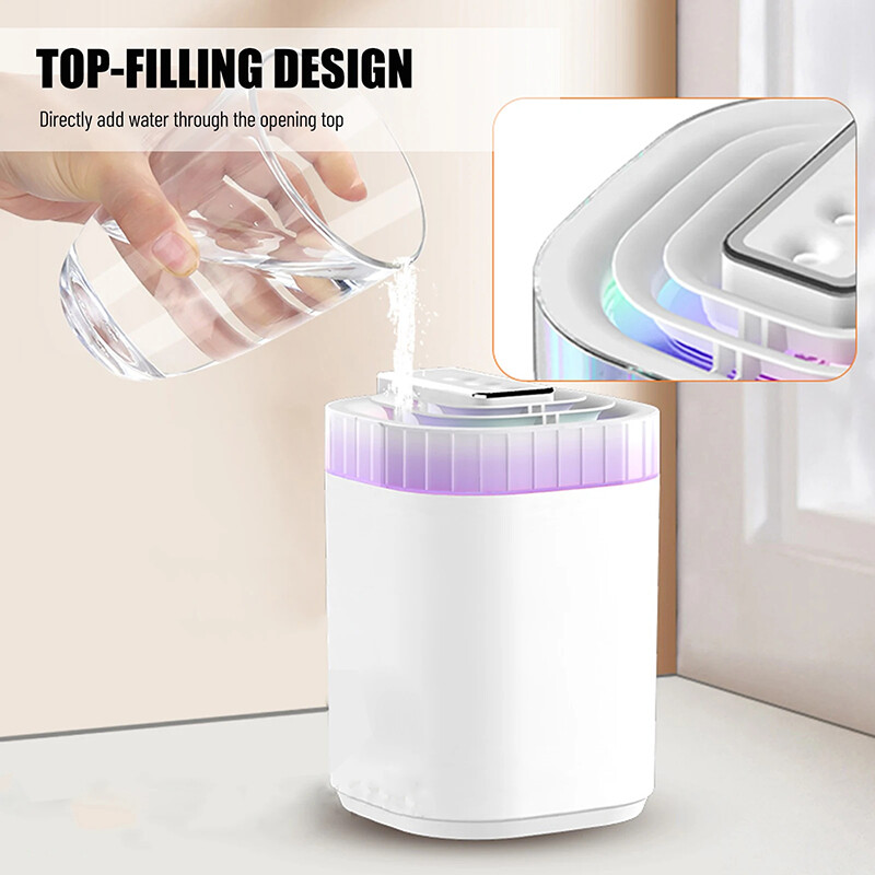 Easy to Use: The bedroom humidifier has 3 levels of mist output that you can fully customize according to your preferences. Just add cool water into the water tank from the top without the need for frequent refills, and choose your preferred type of cool mist. Press and hold the night light for 2 seconds to turn it on or off. Then you can get a colorful LED night light and an ideal indoor climate.