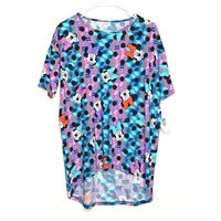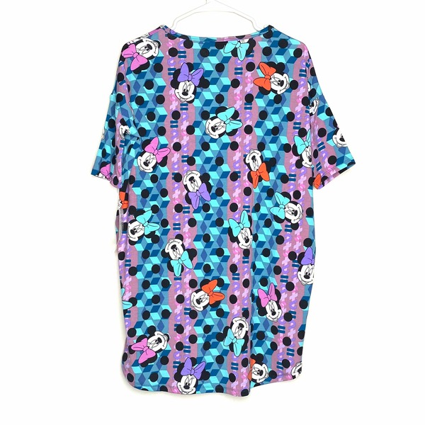 Step into a world of vibrant style and comfort with the LuLaRoe Disney Geometric Minnie Mouse Irma Tunic Top. This stunning tunic, adorned in a captivating blend of blue, purple, and green, features a playful geometric pattern that celebrates your love for Disney while ensuring you stand out in any crowd. Crafted from a soft polyester blend, this top offers a luxurious feel against your skin, making it perfect for both lounging at home and stepping out in style.