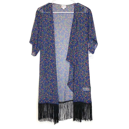 Step into a world of vibrant elegance with the LuLaRoe Women's Monroe Kimono. This stunning cover-up features a captivating blue, red, and black botanical pattern that dances with every movement, making it the perfect addition to your beachwear collection. Crafted from lightweight polyester, this longline kimono not only offers a stylish flair but also ensures comfort and breathability, allowing you to embrace the sun in style.