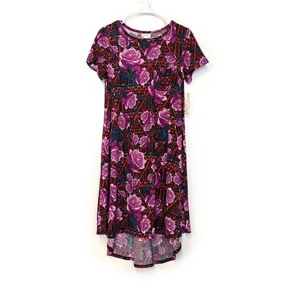 Step into a world of vibrant colors and effortless style with the stunning LuLaRoe Women's Carly Dress. This exquisite dress features a captivating blend of purple, red, and blue in an enchanting abstract and floral pattern that dances with every movement. Crafted from a soft and stretchy polyester/spandex fabric, this swing dress offers unparalleled comfort and a flattering fit, making it the perfect choice for any occasion.
