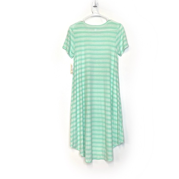 Step into a world of effortless style and comfort with the stunning LuLaRoe Women's Carly Dress. This enchanting dress features a captivating white and green color palette adorned with playful graduated stripes, perfect for making a statement on any occasion. Crafted from a soft and stretchy polyester/spandex blend, this dress promises to keep you feeling fabulous all day long, whether you're out for brunch or enjoying a casual day at home.