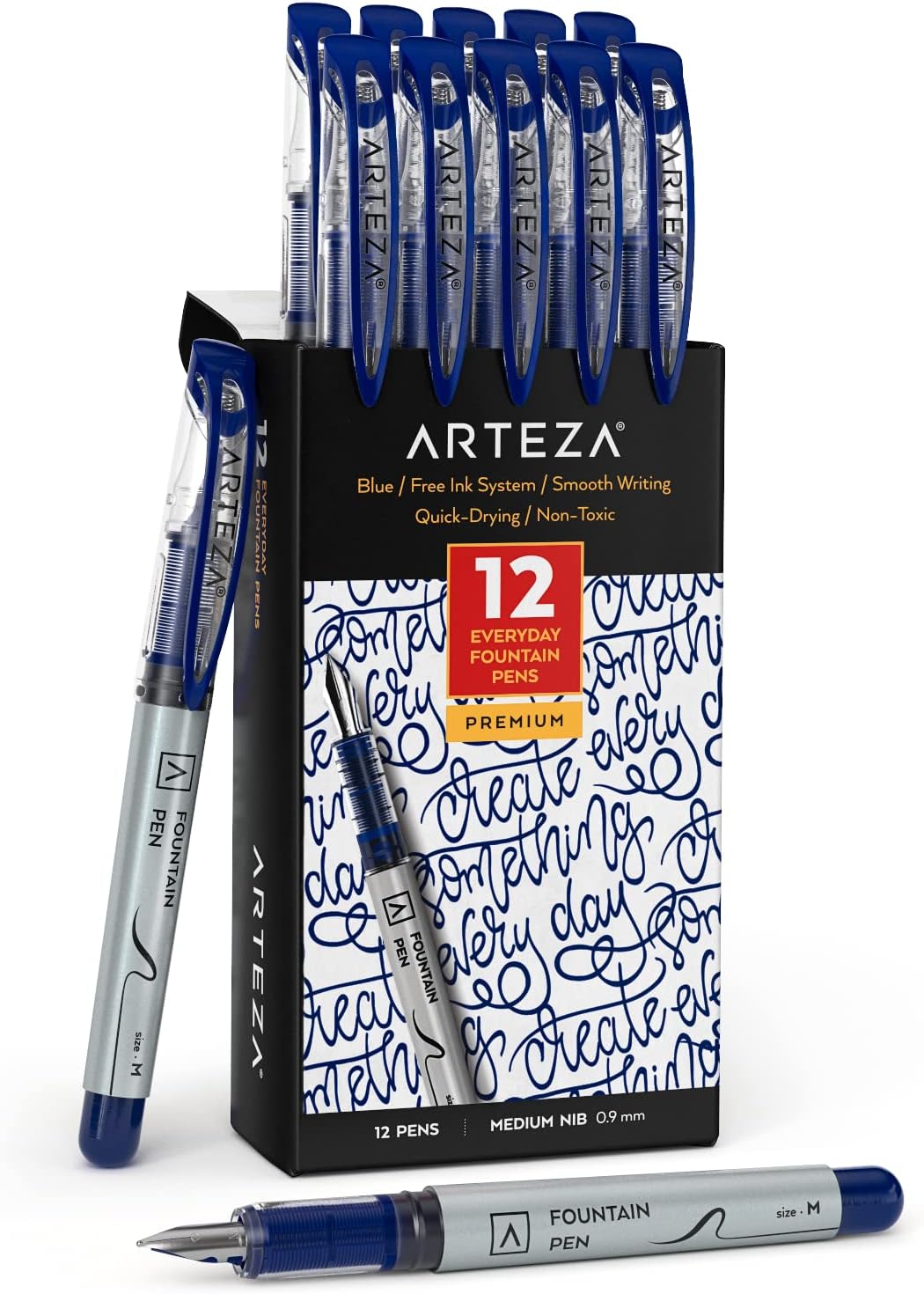 ARTEZA Disposable Fountain Pens, Pack of 12, 1 Count (Pack 12), Blue