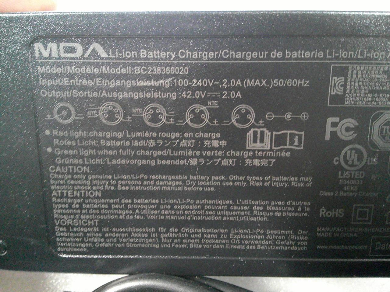 You are bidding for a New MDA BC238360020 42V 2.0A Li-ion Battery Charger. This item is new no box and is guaranteed working. Item is offered with a 30-day money back guarantee. The photos are of the actual item that the winner will receive and no additional items are available to include in this auction that are not pictured in the photos.