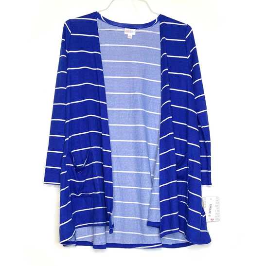 Elevate your casual wardrobe with the stunning LuLaRoe Womens S White/Blue Caroline Stripes Cardigan. This long-sleeve, open-front cardigan features a delightful striped pattern that effortlessly combines style and comfort. Crafted from a soft polyester blend, it drapes beautifully, making it the perfect layering piece for those cooler days. The fresh white and blue hues add a touch of vibrancy, ensuring you stand out in any casual setting.