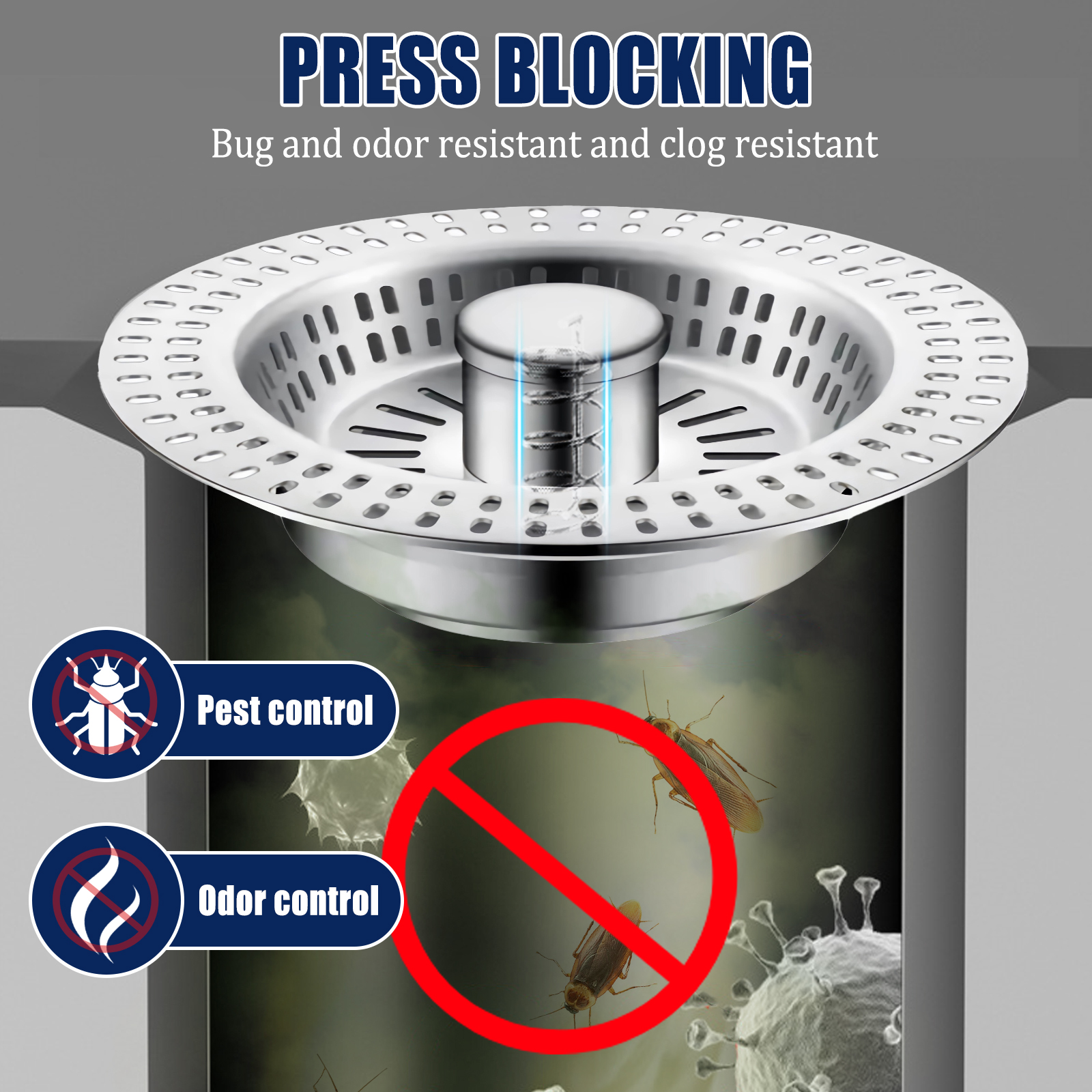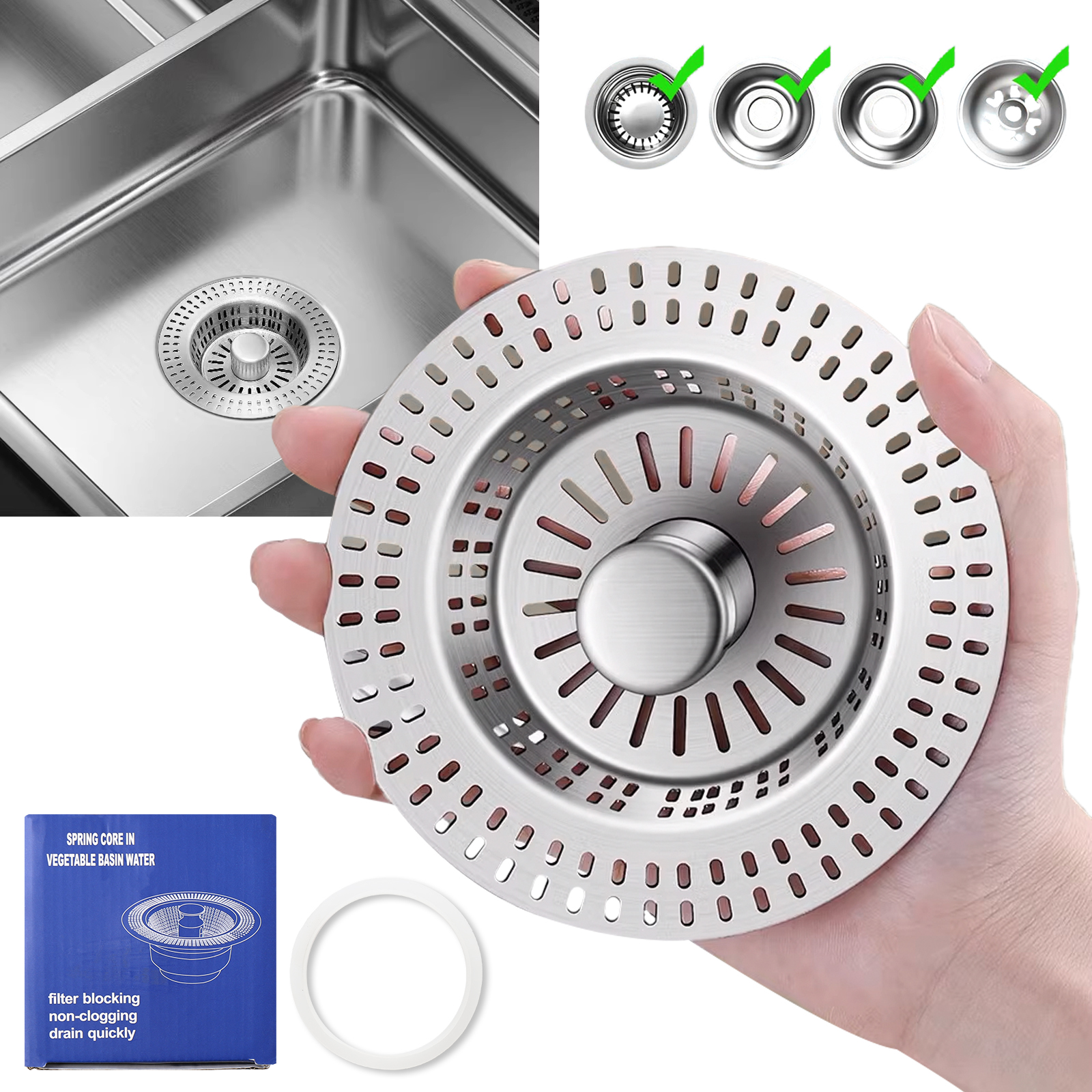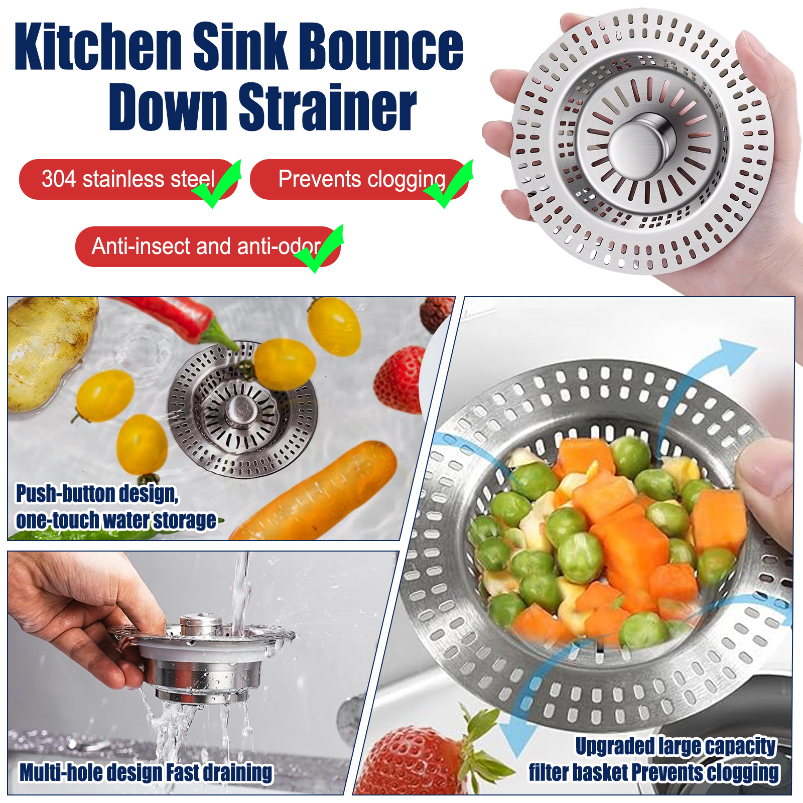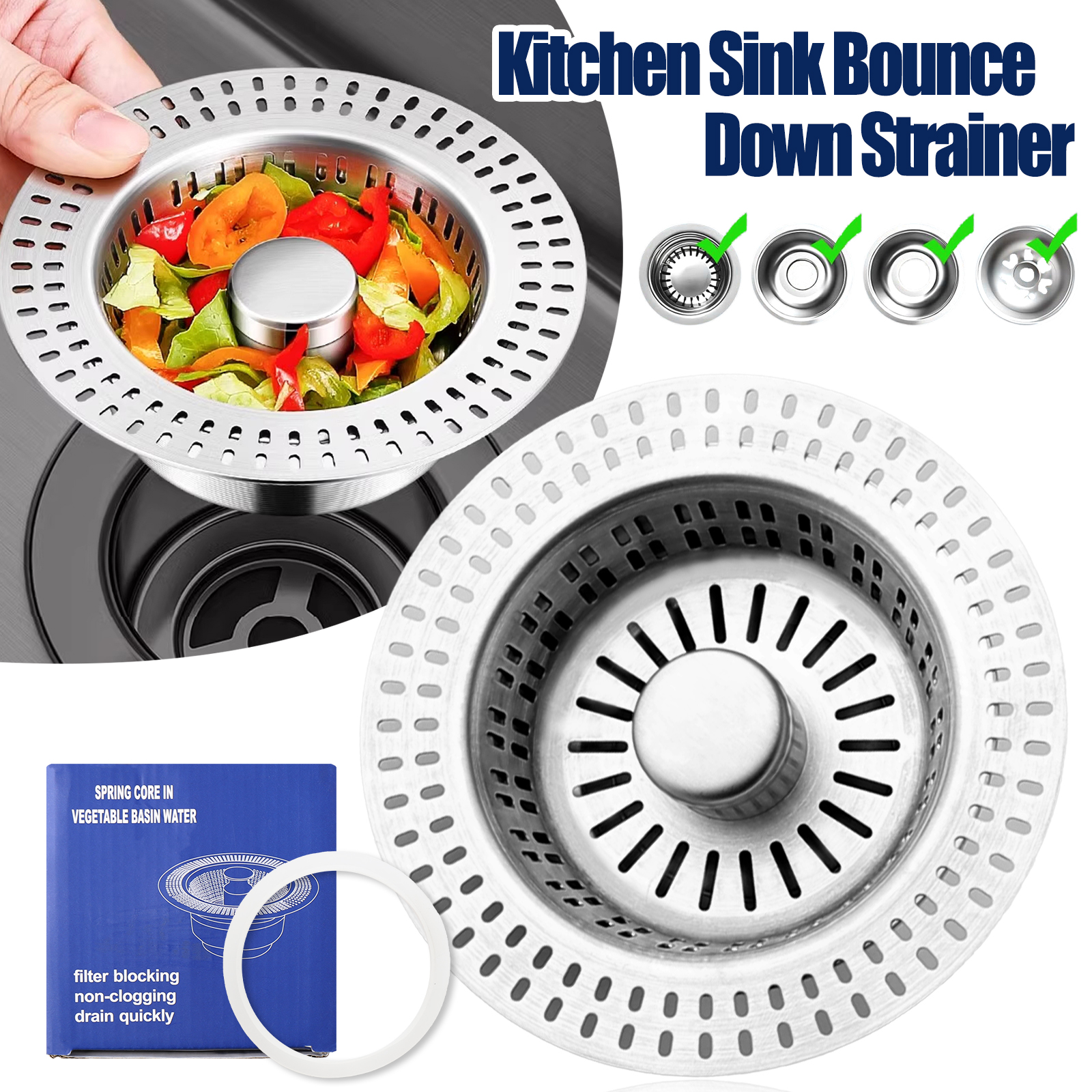 Designed for real-life chaos, this kitchen sink strainer is a triple-threat tool that soaks, strains, and drains with effortless ease. The spring-loaded pop-up core is your one-touch gateway to functionality—press to lock water for soaking stubborn pots, release to drain in a flash while the extra-deep stainless steel basket traps every scrap. No more juggling separate stoppers or worrying about clogged pipes; its 2.8-3.35 inch diameter fits standard US sinks like a glove, and the heavy-duty 304 stainless steel construction laughs off rust and daily wear. Whether you’re prepping a feast in a bustling restaurant or tackling dishes at home, this strainer’s massive capacity holds 50% more waste than regular models, letting you focus on what matters—no more constant emptying or panic over slipping scraps. It’s not just a sink accessory; it’s a kitchen upgrade that turns tedious chores into seamless, efficient wins.