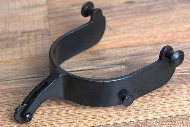 In This Bull Spurs Pair The Material Is Used As Black Steel. The Width Is 3-1/8 Inch. The Band Is 1 Inch. The Shank Is 1/2 Inches. The Rowel Is 5/8 Inch And The Point Is 6 Inches.