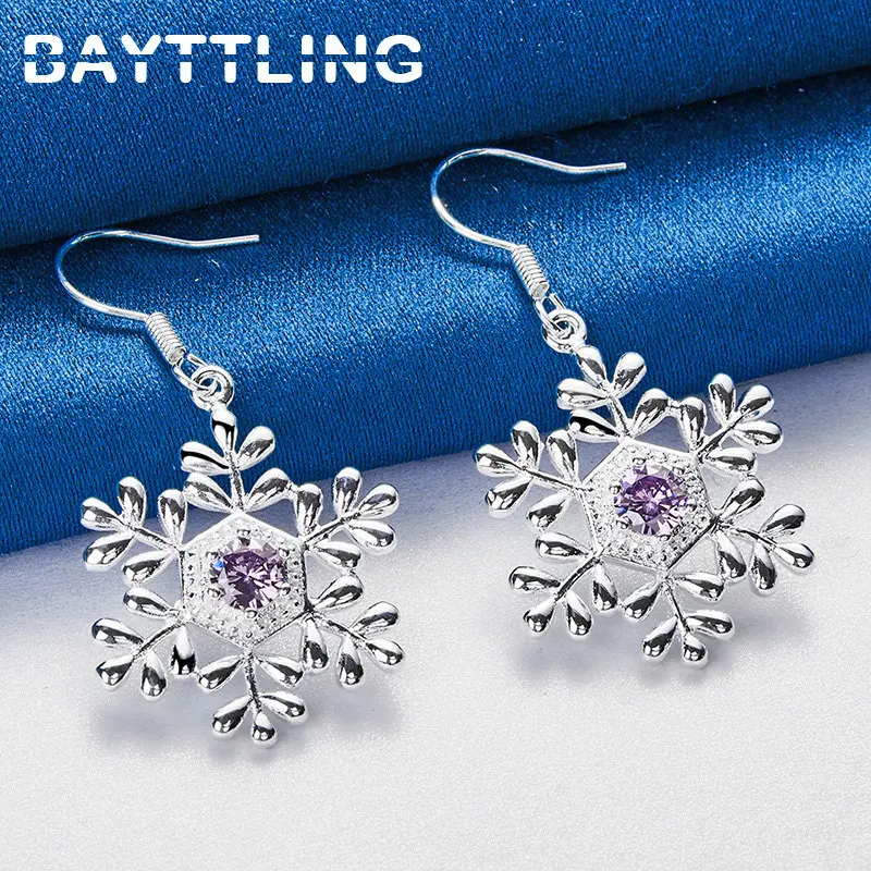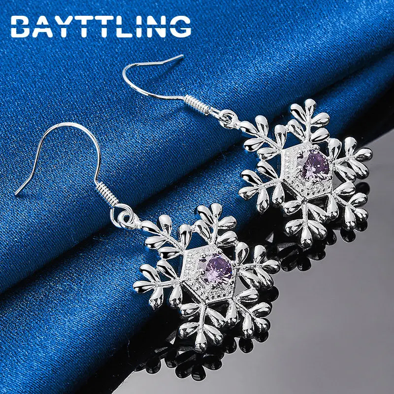 925 Sterling Silver Fashion 23MM Exquisite Temperament Snowflake Zircon Earrings For Women Girlfriends Gift Jewelry Accessories