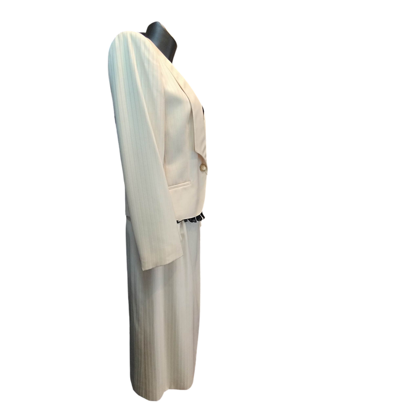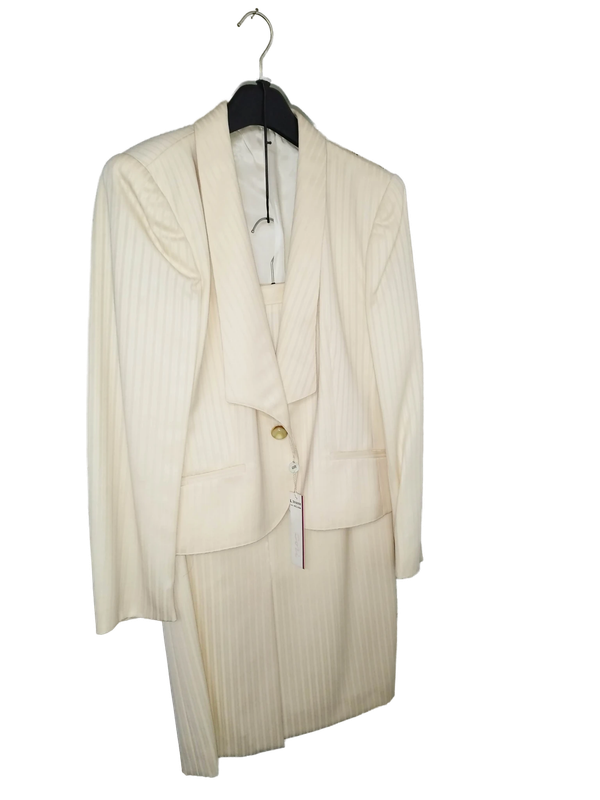 ![]() | Elegant Italian Tailleurs - Two Classic Variants (Warm White Cori® Regular + Black PiùDonna® / Selene® Curvy) - Made in Italy Two refined, all-occasion Italian tailleurs offered together in this listing: a warm-white, vintage Cori® by GFT Group® wool suit (classic, structured silhouette from the late 1980s) and a black, curvy PiùDonna® by Selene® suit (softer lines, made for a fuller silhouette). Both are Italian-made and carefully finished - ideal for ceremonies, professional events, or any time you want an unmistakable touch of Italian tailoring. The description that follows is split into two sections (one for each model) so buyers can see precise details, materials, measurements and how each piece fits. Measurement details and conversion notes are included below to help you choose the correct size but we can send any other detail you will need. 1) Warm White Cori® by GFT Group® — Pure Virgin Wool Tailleur (Italian 42 / 44 — Cori® 88R / 91R)Are you ready to discover with a timeless, sophisticated, and versatile tailleur? This stunning warm white wool set, composed of a tailored jacket and a pencil skirt, is the epitome of Italian elegance and craftsmanship. Perfect for important ceremonies, formal events, or galas, this warm white (colour typical of pure wool) tailleur is designed to make you feel confident, powerful, and effortlessly chic. Since some buyers have requested similar garments in the condition in which they are, even when a passage to the laundry would be needed, due to some shadows or yellowing present on the bottom of the skirt and on the shoulders of the jacket, photos of which we will send you upon simple request (we ask this not so much for the cost but to discriminate on the shipping time that in case of passage to the laundry will be lengthened by 3 or 4 days). This modality will work as follows: The purchase of the laundry service (choose local pick up and not shipping) at this link: https://www.ebay.com/itm/365561941227 for the specific size you wish to purchase, will be the reservation of the item, which will be made unavailable to everyone, both on ebay and on the other platforms where it is present; we will then agree on a date when, once back from the laundry, only those who have purchased the “presale” will be able to complete the purchase. Key features (white Cori® tailleur):