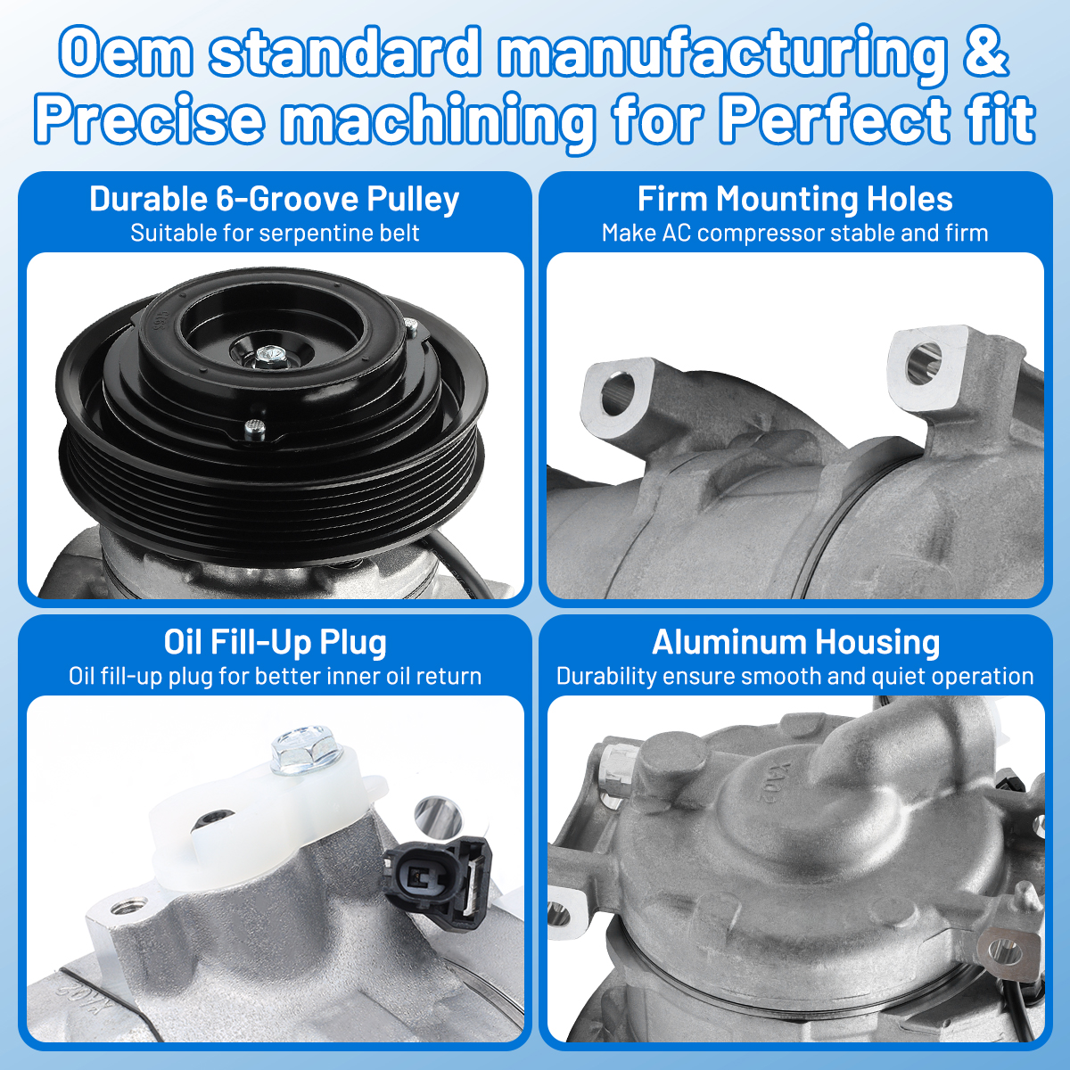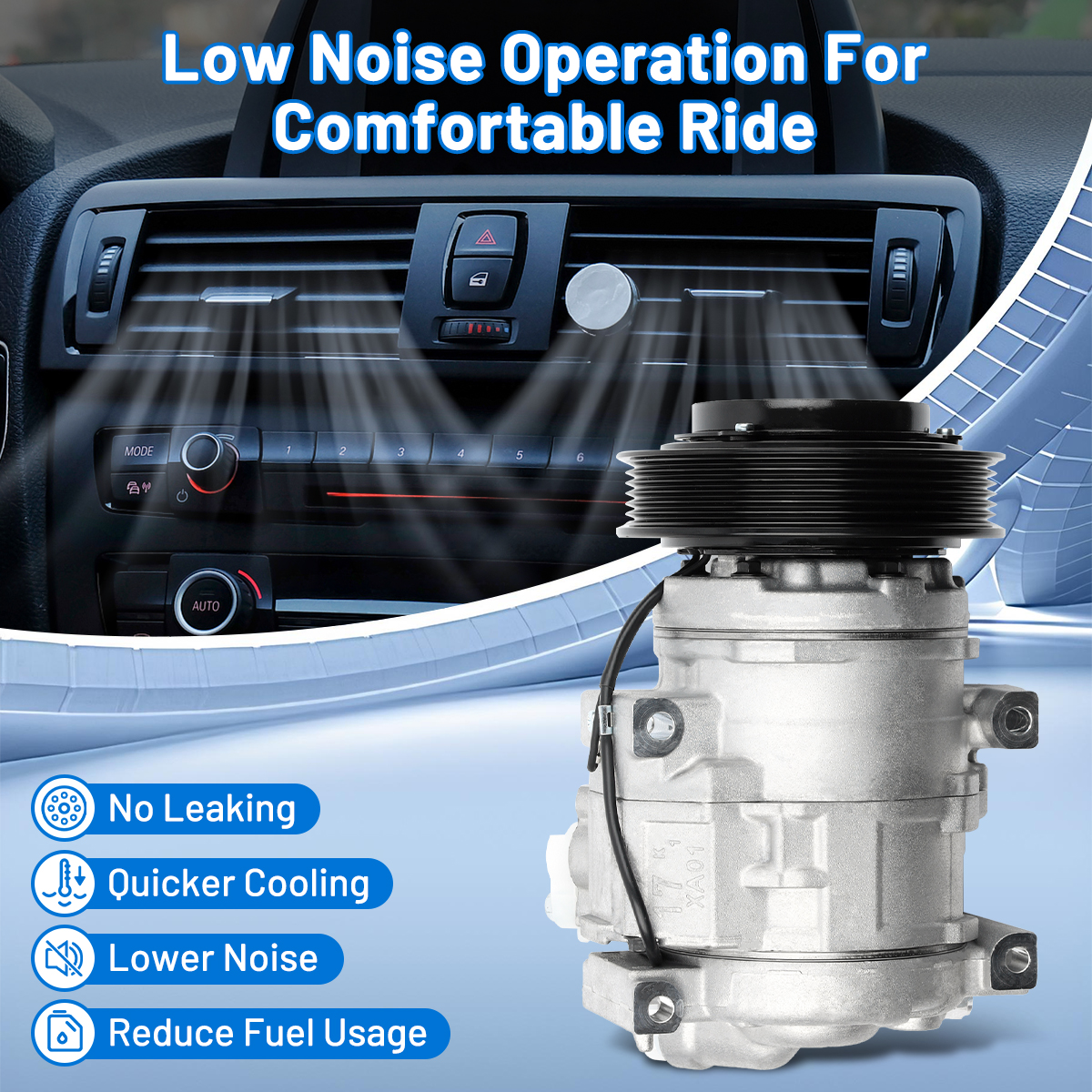 Our AC compressor kit works efficiently under low noise and tiny vibration to provide you a super cool trip. Driving at a stable speed will help reduce fuel consumption.